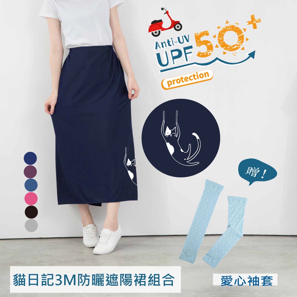 (組合)貝柔貓日記3M防曬遮陽裙6色+愛心袖套 防曬 機車用品貓日記_黑色+愛心袖套(隨機色)|貓日記_灰藍色+愛心袖套(隨機色)|貓日記_桃紅色+愛心袖套(隨機色)|貓日記_丈青色+愛心袖套(隨機色)Peilou 貝柔