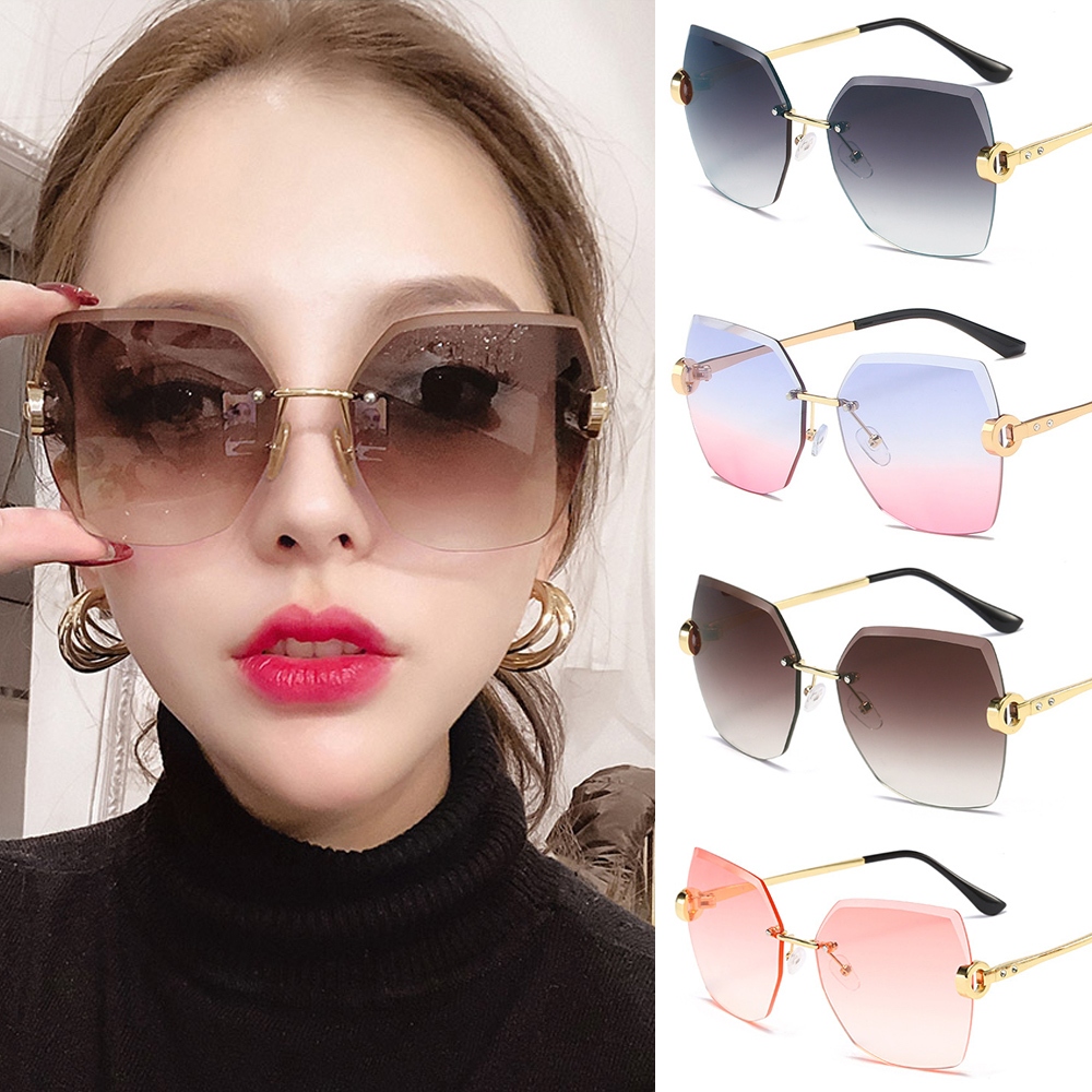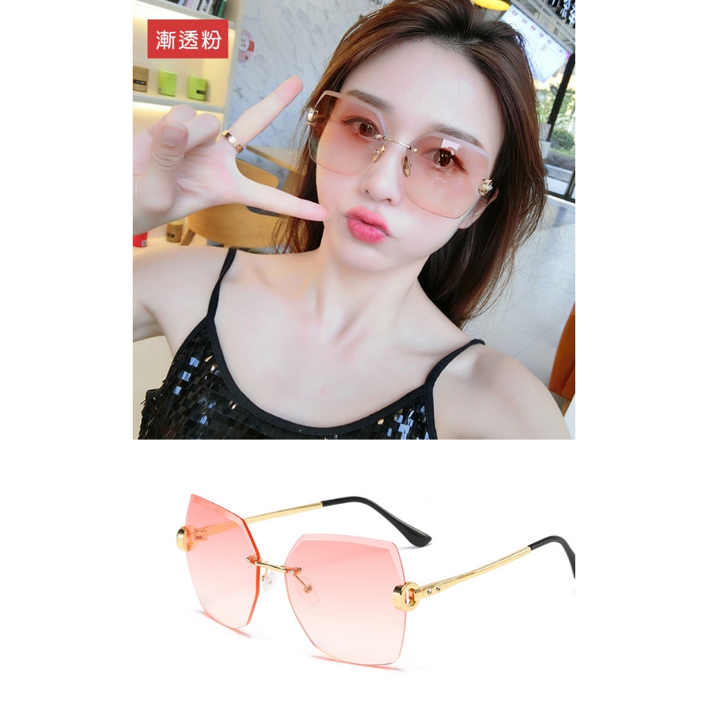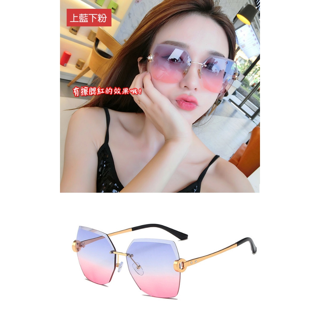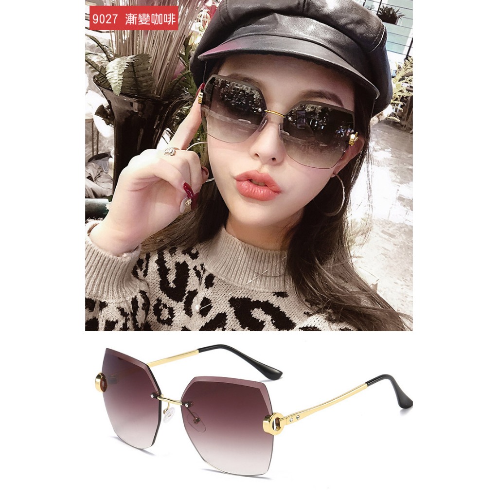 seoul show首爾秀 無框水晶切邊鑲鑽太陽眼鏡UV400墨鏡 9027漸變茶|上藍下粉|漸變咖啡|漸變黑灰|漸透粉Sunglassesseoul show首爾秀 日韓流行穿搭配件