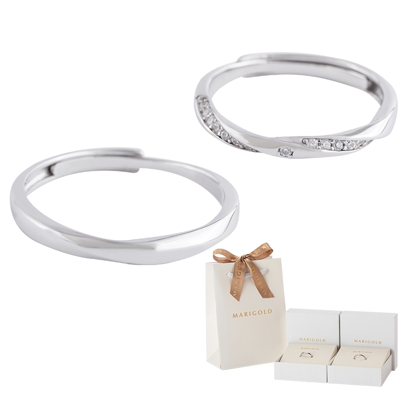MARIGOLD流雲扭轉1+1二入可調式925純銀情侶對戒禮盒組【ATS320】