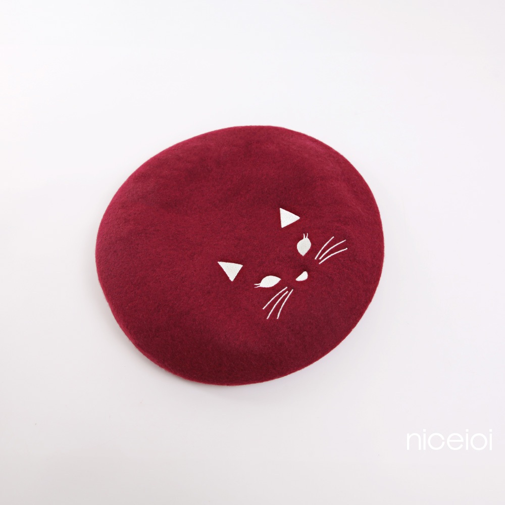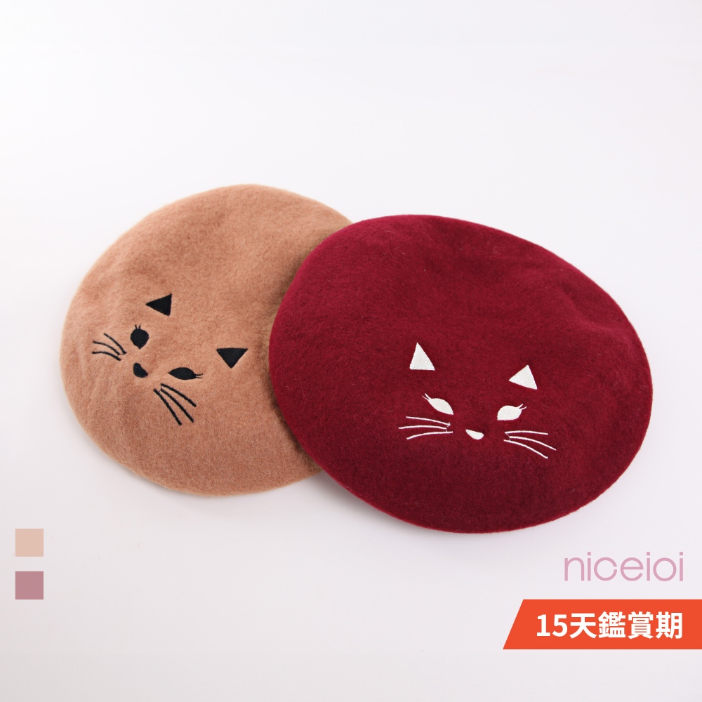 niceioi【特惠】日系貓咪毛呢貝蕾帽 (共2色) 女裝咖,F|紅,Fniceioi 官方旗艦店
