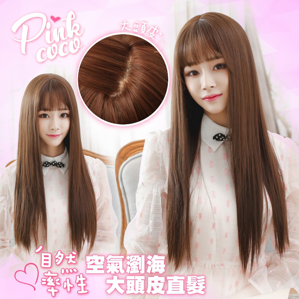 PINKCOCO 粉紅可可 假髮【w01237】自然率性 大頭皮 自由分線 空氣瀏海長直髮亞麻黃|巧克力-圖片色|自然黑Wigs & ExtensionsPINKCOCO 粉紅可可 官方旗艦館