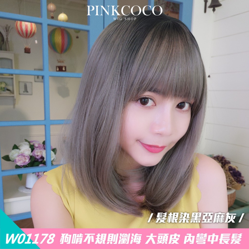 PINKCOCO 粉紅可可 假髮【W01178】狗啃不規則瀏海 大頭皮 內彎中長髮髮根染黑亞麻灰|髮根染黑糖果棕Wigs & ExtensionsPINKCOCO 粉紅可可 官方旗艦館