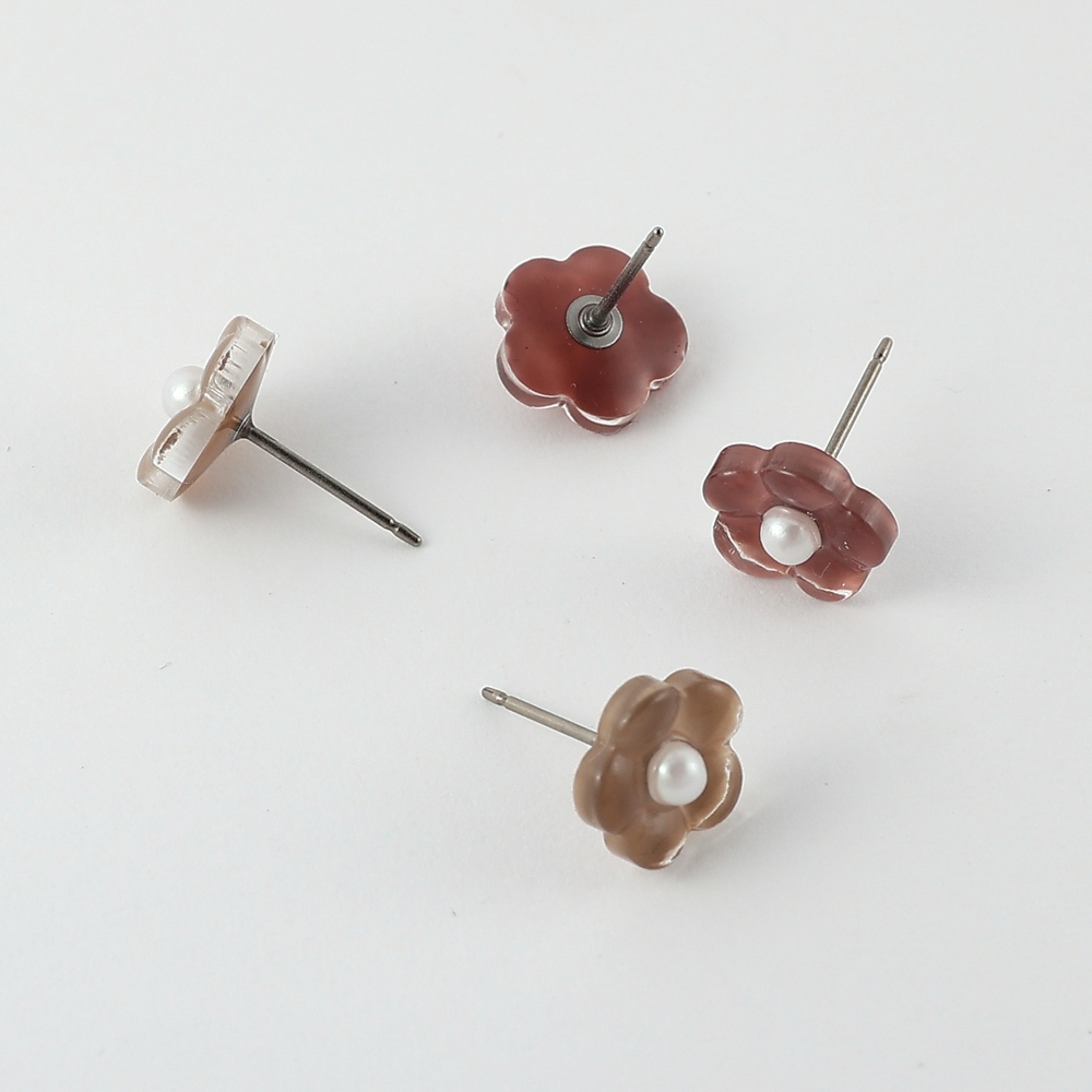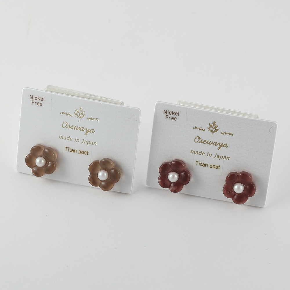 |OSEWAYA|半透之花耳環 優雅花店 低敏 花朵 珍珠 純鈦耳針 日本製造 日本飾品褐色|紅色OSEWAYA|台灣官方商店