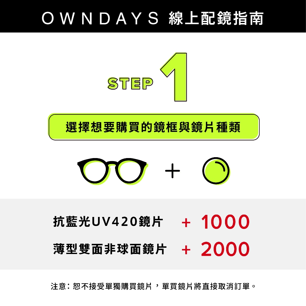 【OWNDAYS 線上配鏡】光學鏡框加購功能性鏡片客製專區(請詳閱配鏡指南&商品描述)抗藍光鏡片|薄型雙面非球面鏡片|薄型雙面非球面_抗藍光鏡片|調光變色鏡片 棕色|調光變色鏡片 墨綠色|調光變色鏡片 灰色|薄型雙面非球面_調光變色鏡片 灰色|薄型雙面非球面_調光變色鏡片 墨綠色|薄型雙面非球面_調光變色鏡片 棕色Frames & GlassesOWNDAYS