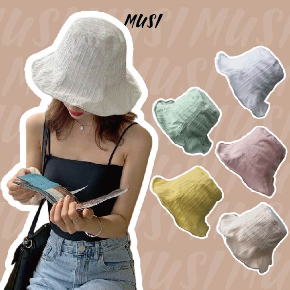 [MUSI創意玩星球-台灣快發]漁夫帽 遮陽帽 大帽檐帽子 帽子女 白色遮陽帽粉色遮陽帽 輕薄水桶帽日系優雅波浪帽防曬帽粉嫩色系漁夫帽 綠色 現貨隔天發MUSI 口罩&包包帽子 專賣