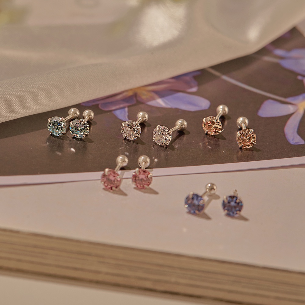 OB嚴選 閃耀彩色寶石低敏銀質後鎖珠耳環 《XA265》現貨/飾品/韓系玫瑰金,F|粉紅,F|深天藍,F|淺水藍,F|白,FOB嚴選官方旗艦店