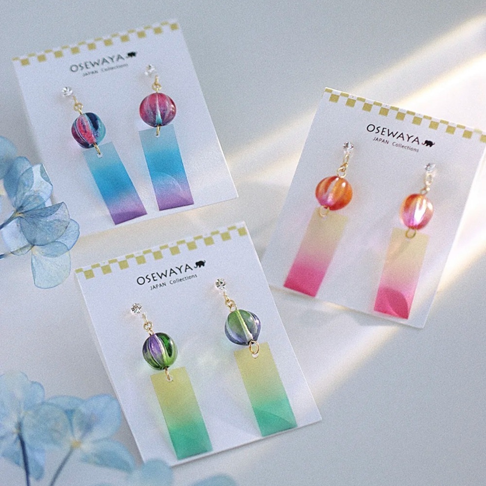 |OSEWAYA|晶透風鈴耳環 粉色 藍色 綠色 日本飾品 日本製造粉色|藍色|綠色OSEWAYA|台灣官方商店