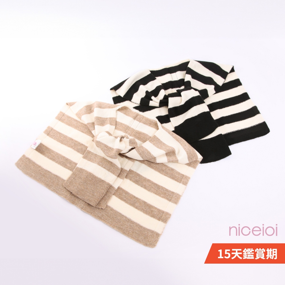 niceioi【特惠】出遊去條紋針織披肩 (共2色) 女裝卡其,F|黑,Fniceioi 官方旗艦店