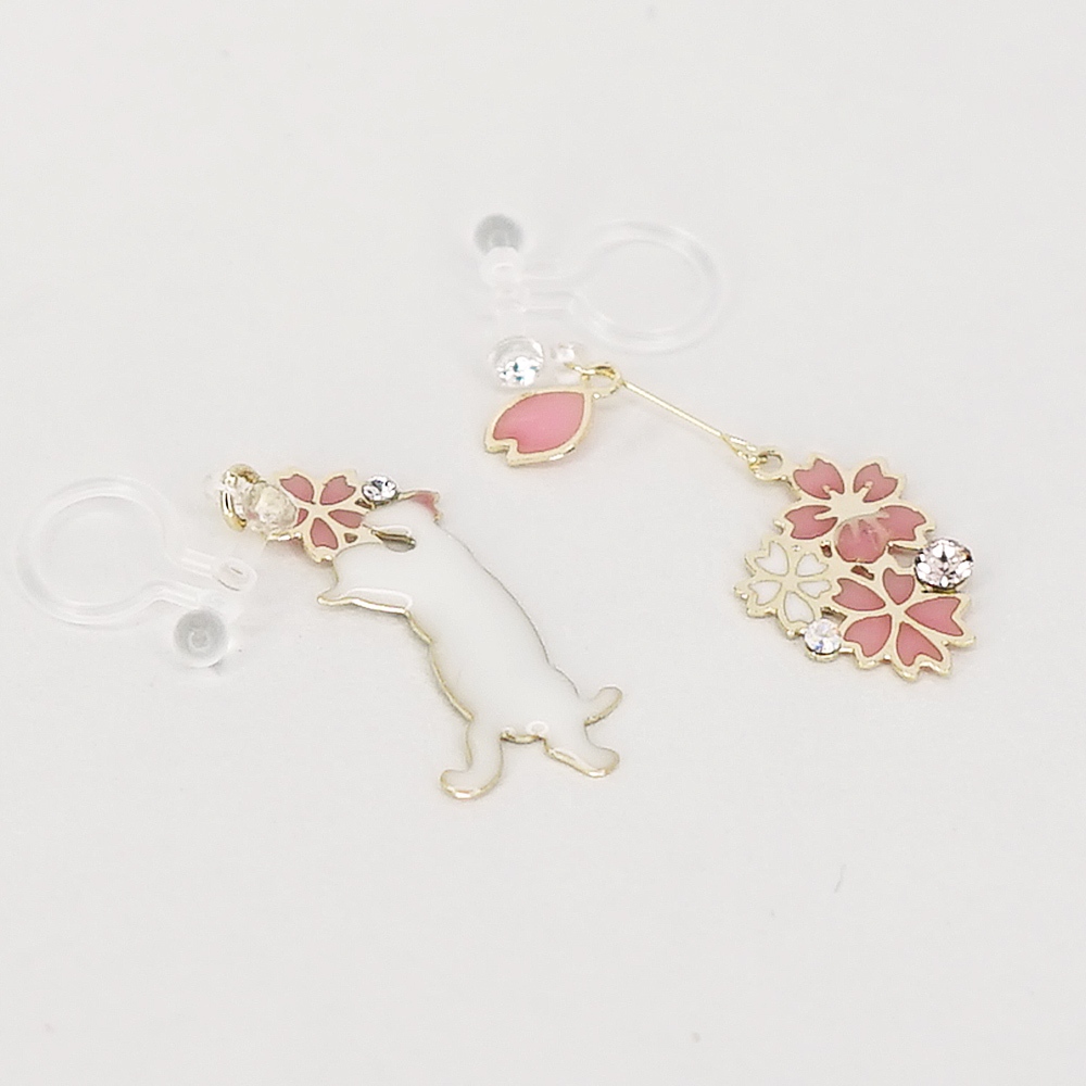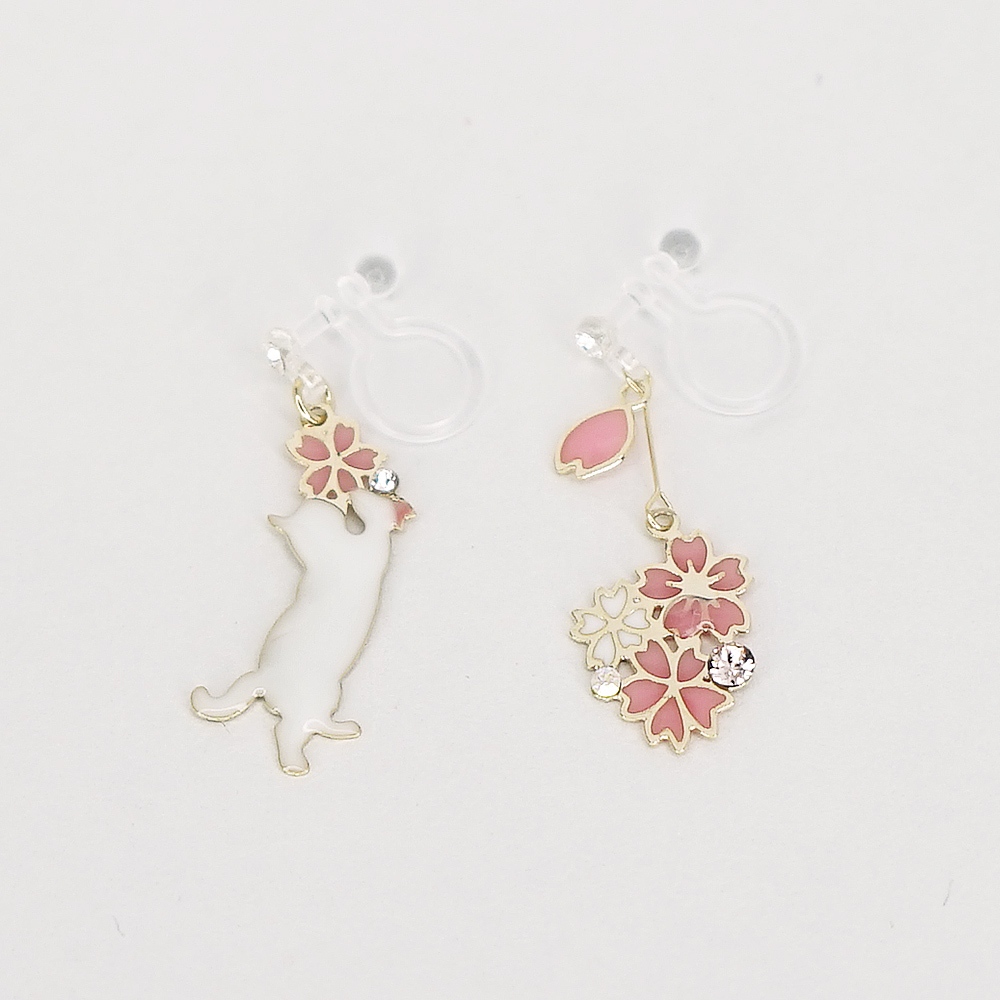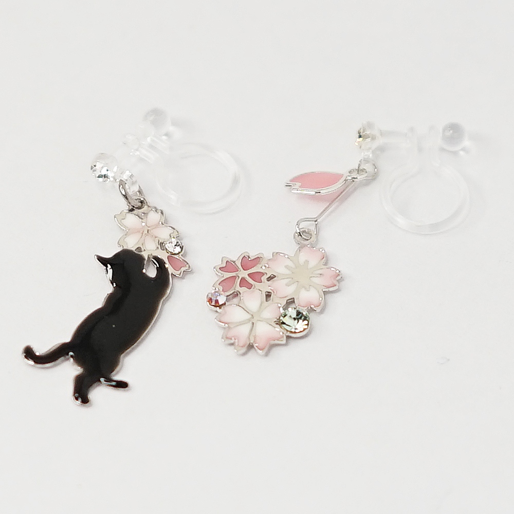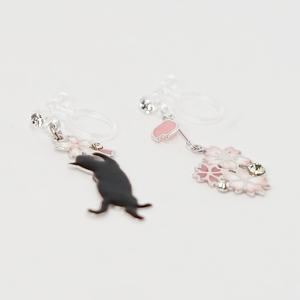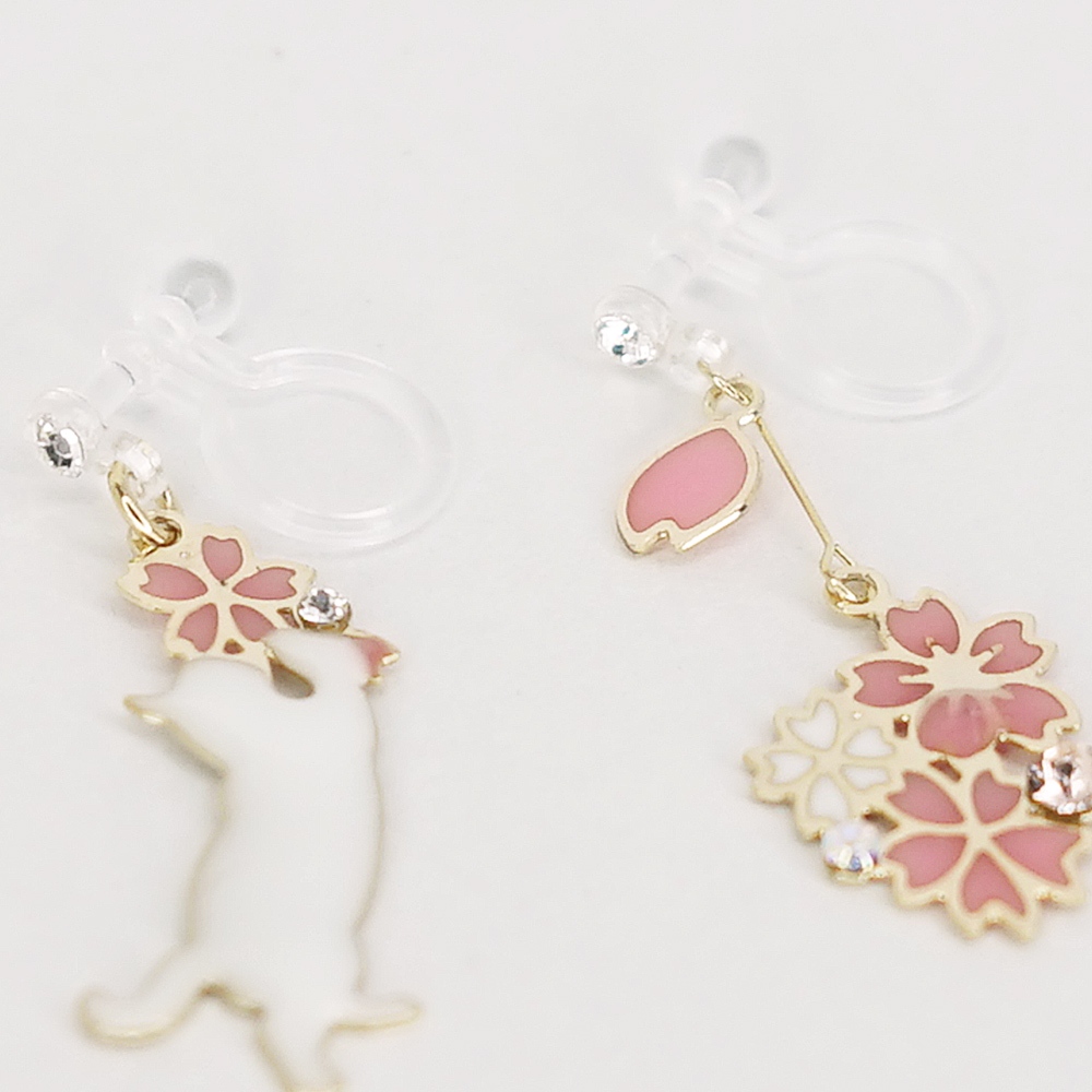 |OSEWAYA|櫻花與懶貓耳夾 白貓 黑貓 櫻花盛開 櫻花 春季 賞櫻 日本飾品 日本製造白貓|黑貓OSEWAYA|台灣官方商店