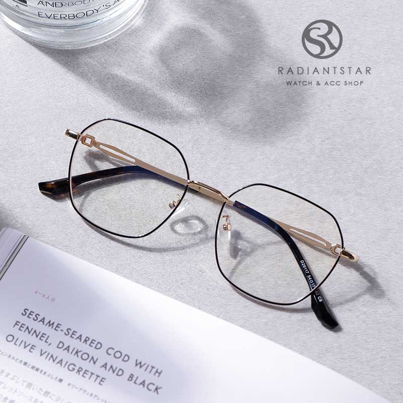 午後茶坊多邊修臉型金屬鏤空造型平光眼鏡【G29117】璀璨之星亮黑邊框|玫金邊框Frames & GlassesRadiant Star 璀璨之星 官方旗艦店