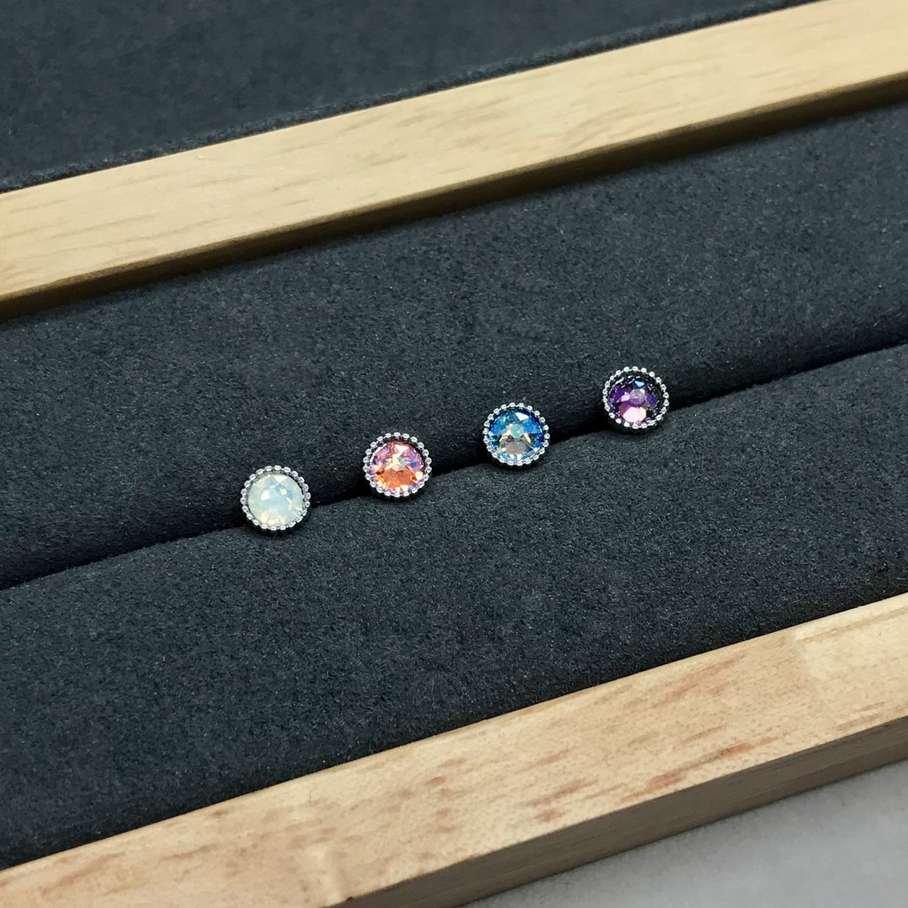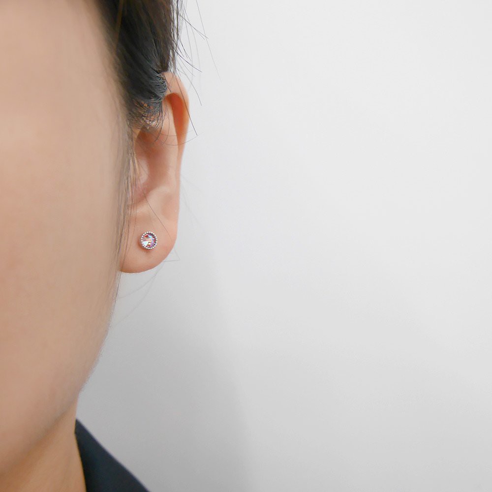 Snatch X Mooner [採用施華洛世奇水晶] 霓幻-鎖珠鋼耳環 抗敏鋼耳環01柔嫩蛋白石-單支|02夕陽霓虹-單支|03雲霧結晶藍紫-單支|04北極之光-單支Snatch Store
