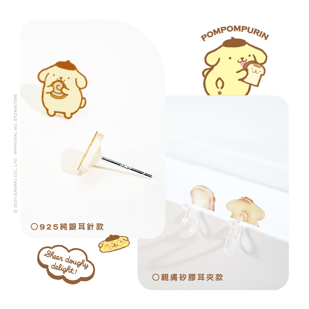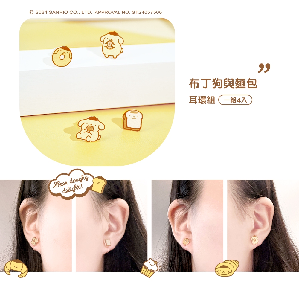 STORY故事銀飾-PomPomPurin系列-造型耳環組-布丁狗與麵包款925純銀耳針|親膚矽膠耳夾STORY ACCESSORY 官方旗艦店