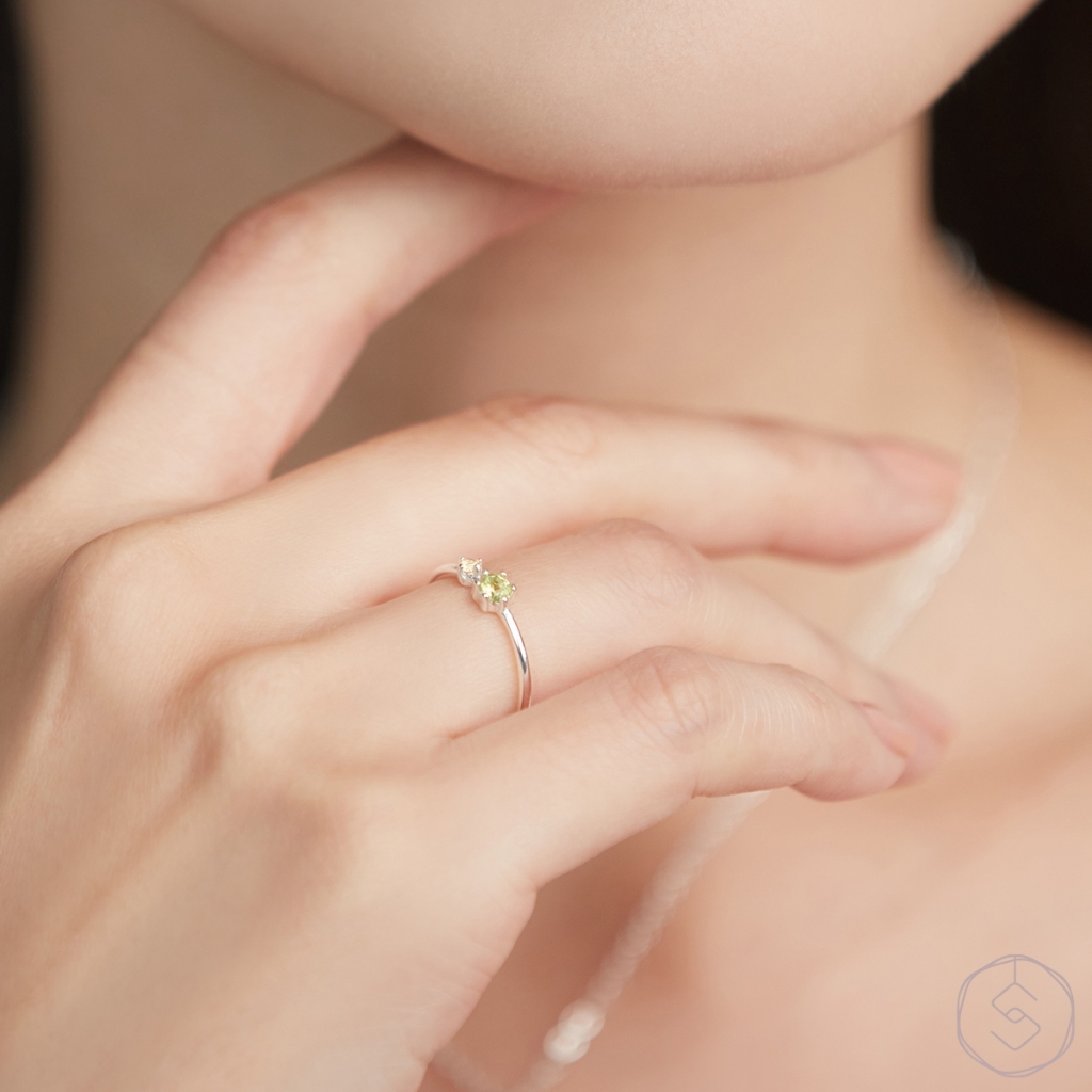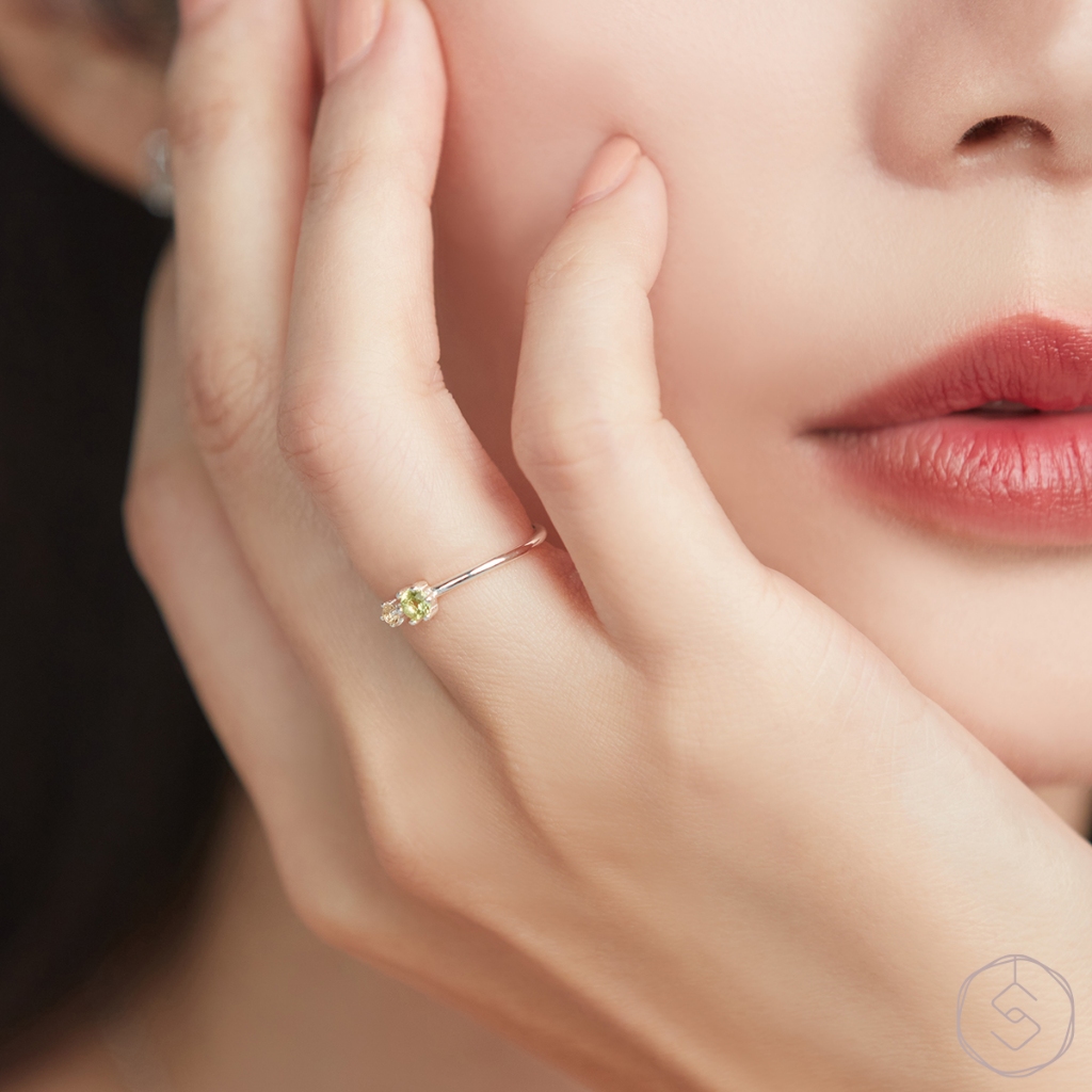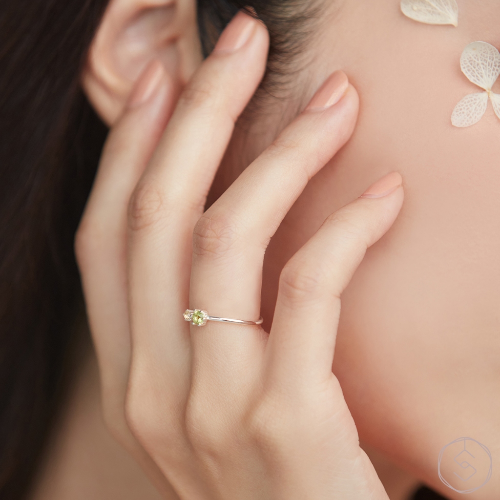 【SPANCONNY】繆思MUSE | 橄欖石 黃水晶 S925純銀 | 微光雙鑽線戒