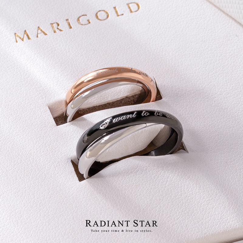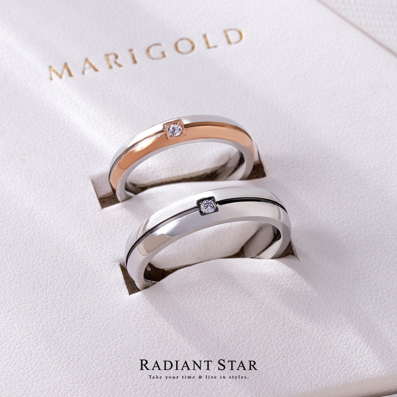 MARIGOLD餘生是你1+1二入鈦鋼情侶對戒禮盒組【ATS506】璀璨之星女款玫瑰金+男款黑Radiant Star 璀璨之星 官方旗艦店