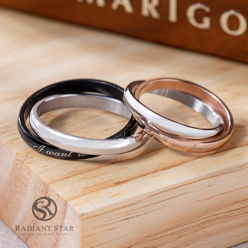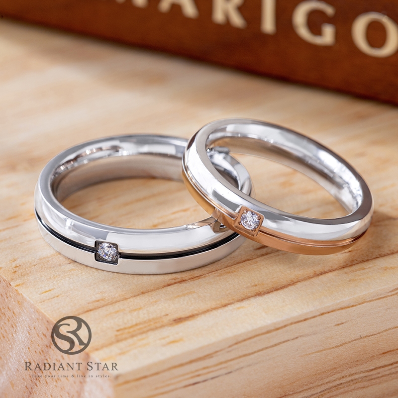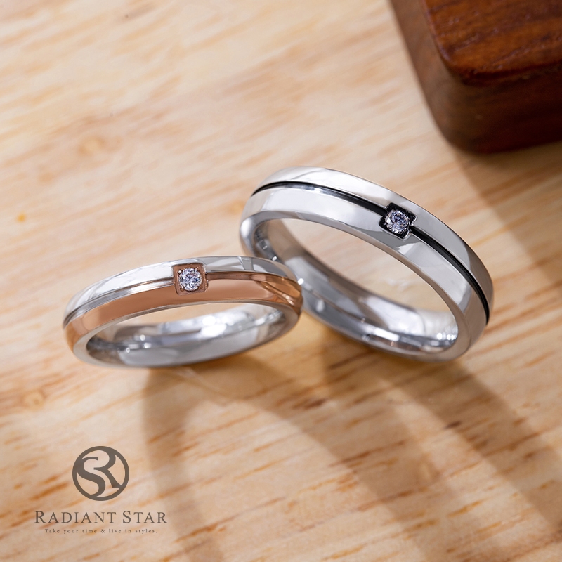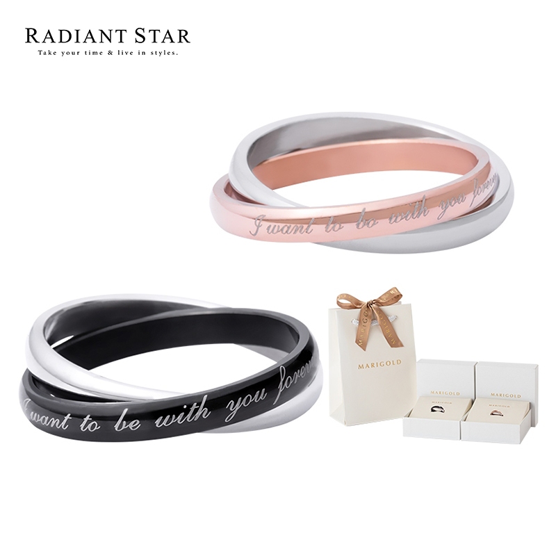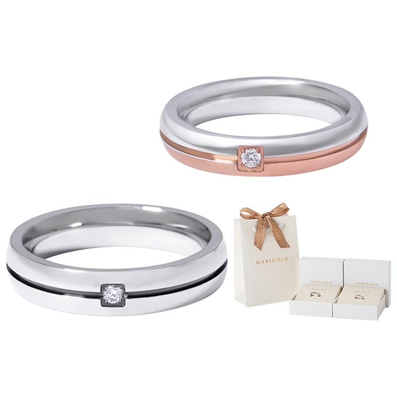 MARIGOLD浪漫一生1+1二入鈦鋼情侶對戒禮盒組【ATS504】璀璨之星女款玫瑰金+男款黑Radiant Star 璀璨之星 官方旗艦店