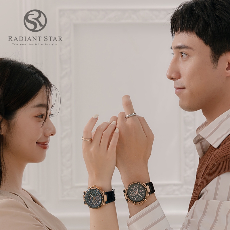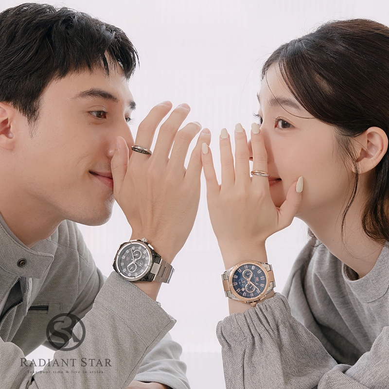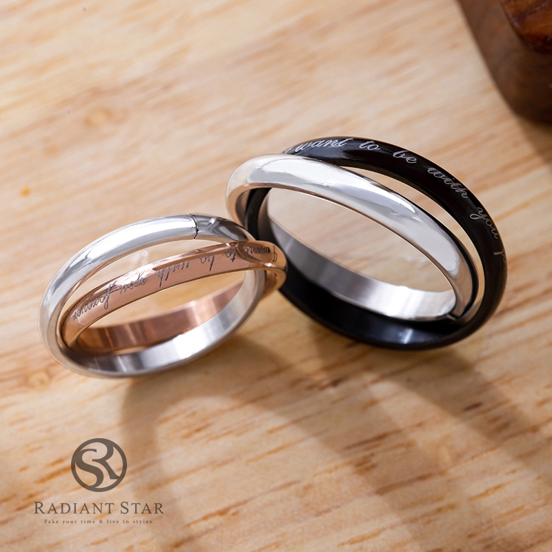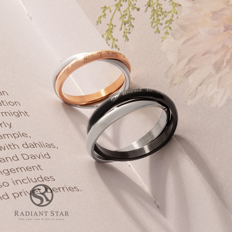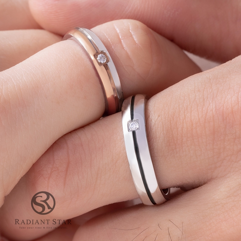MARIGOLD浪漫一生1+1二入鈦鋼情侶對戒禮盒組【ATS504】璀璨之星女款玫瑰金+男款黑Radiant Star 璀璨之星 官方旗艦店