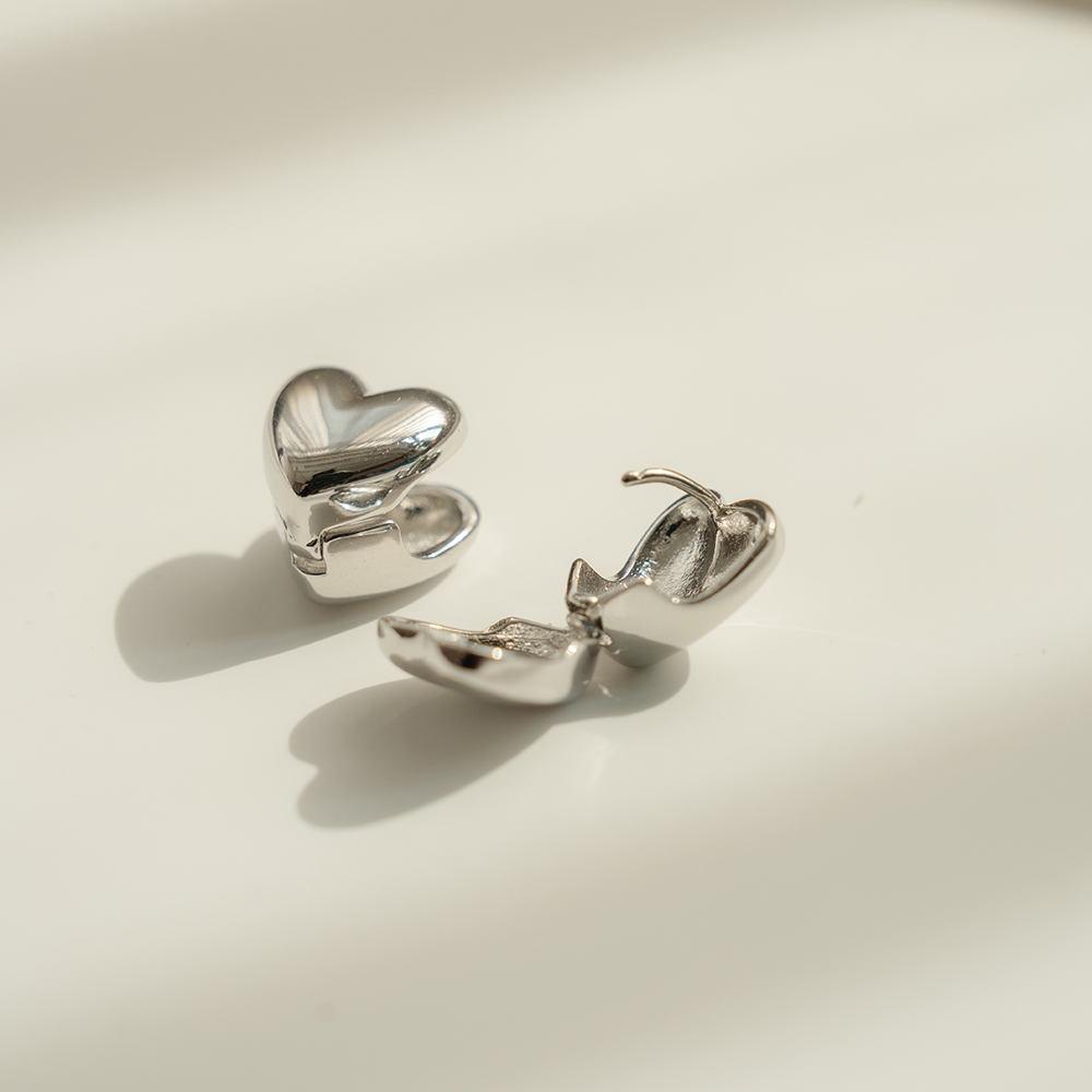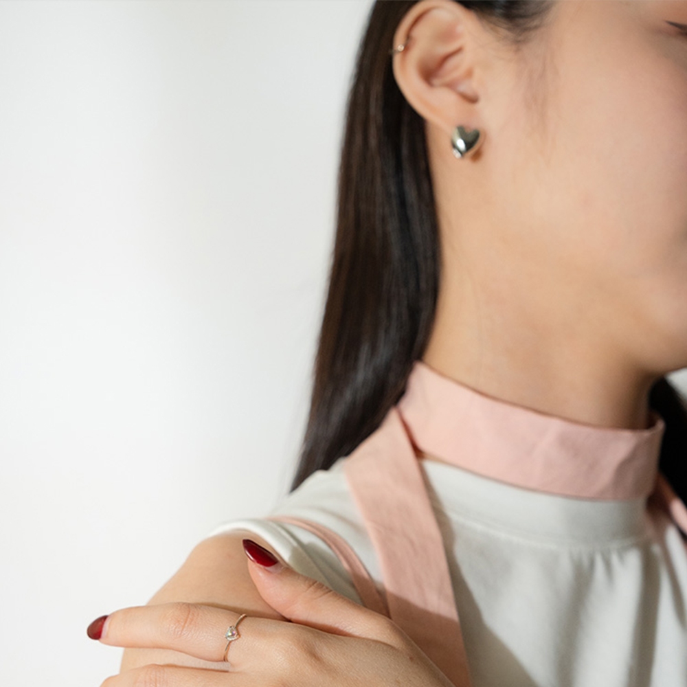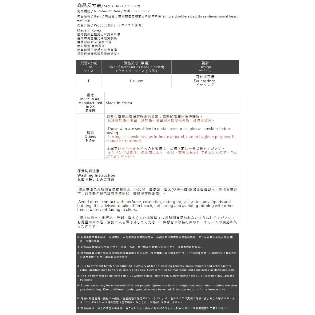 QUEENSHOP_ S 女裝 正韓 簡約雙面立體愛心耳針式耳環 現+預 【07030952】依賣場QUEENSHOP