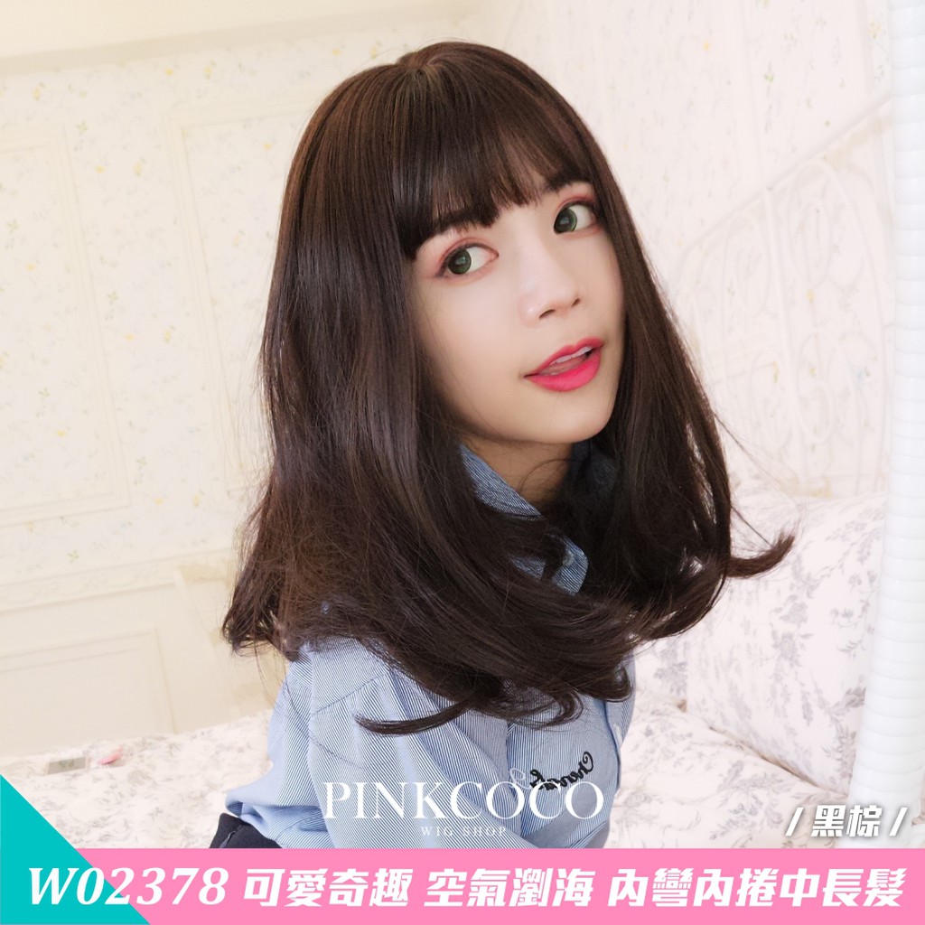 PINKCOCO 粉紅可可 假髮【W02378】 可愛奇趣 大頭皮 空氣瀏海 內彎內捲中長髮髮根染黑-亞麻灰|黑棕色Wigs & ExtensionsPINKCOCO 粉紅可可 官方旗艦館