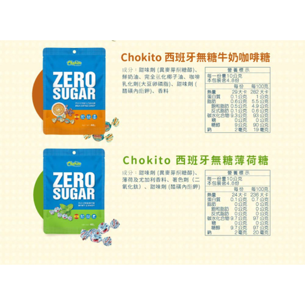 Chokito 巧趣多西班牙無糖糖果無糖超濃咖啡糖48g|無糖牛奶咖啡糖48g|無糖薄荷糖48gSweets & CandyRED COW 紅牛奶粉官方網站