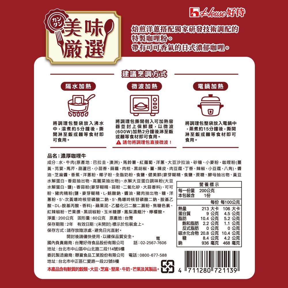 【日本House 好侍】咖哩調理包 200g/盒-超值箱購24盒(香醇咖哩雞、濃厚咖哩牛、濃醇素食咖哩)咖哩包香醇咖哩雞|濃醇咖哩牛|濃純素食咖哩Cooking Paste & KitRoyal Chef 天廚商城
