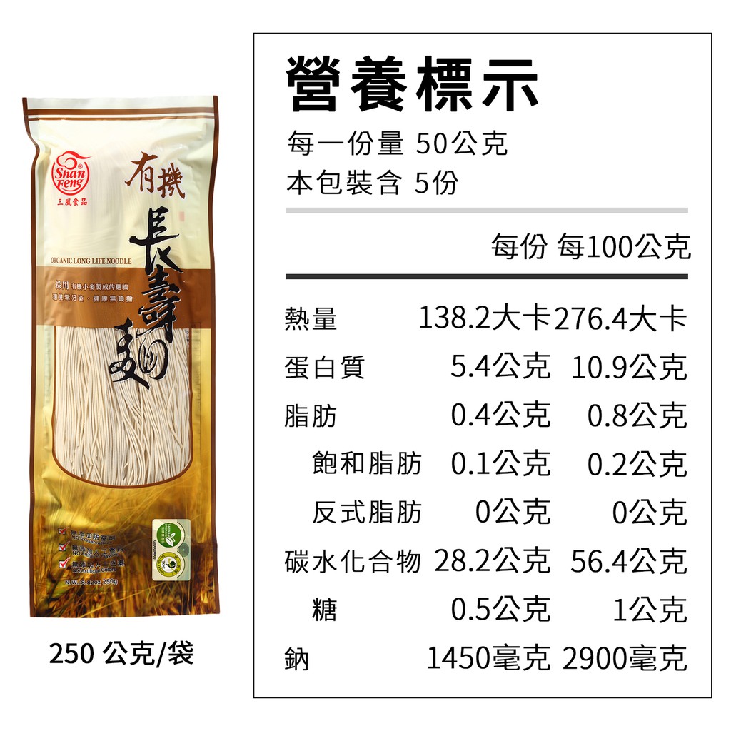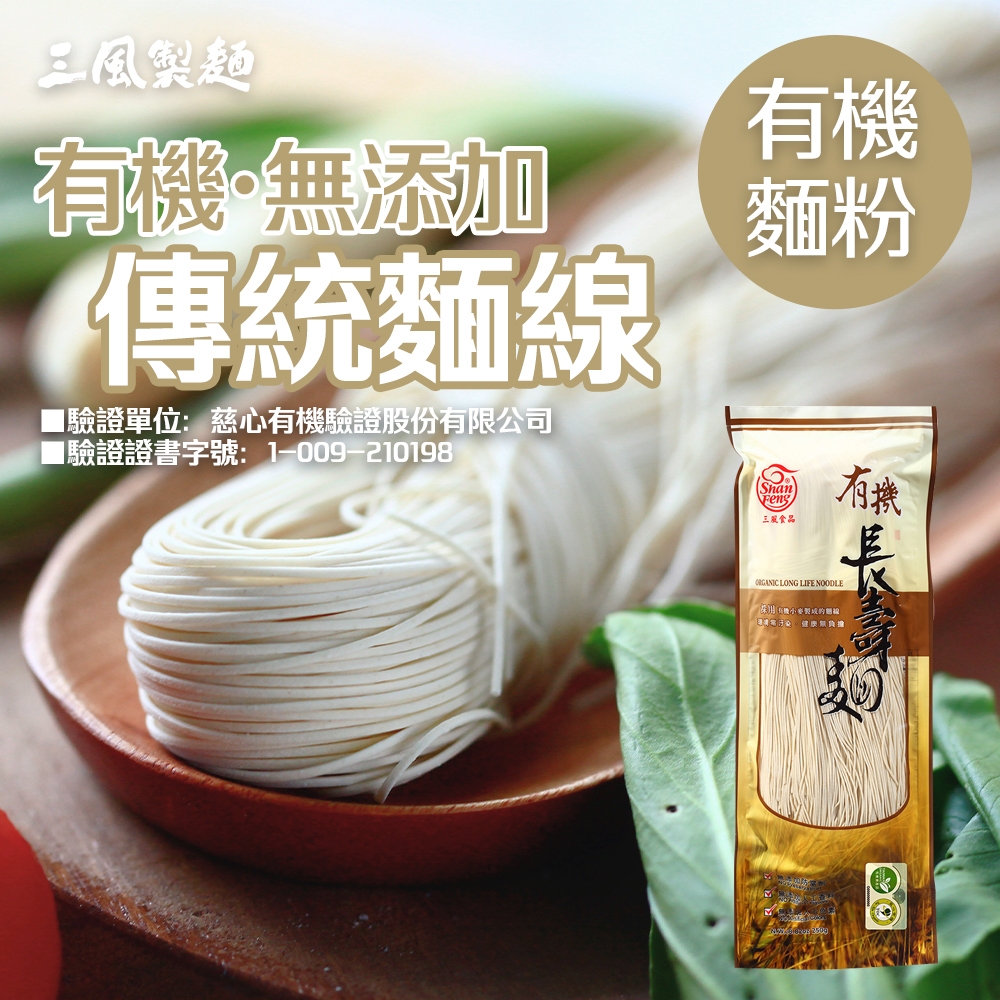 【三風製麵】有機長壽麵線 250g 炊仔傳統麵線 會鹹 全素有機長壽麵線250公克(2~3人份)NoodlesShanfeng 三風製麵官方旗艦館