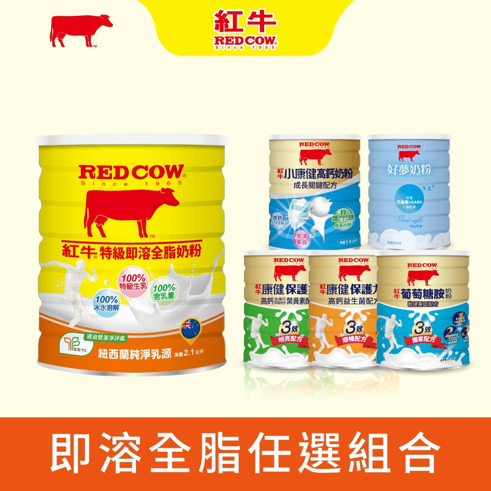 【紅牛官方直營】特級即溶全脂奶粉2.1kg/罐+機能配方奶粉(組合)即溶2.1+葡萄糖胺1.5|即溶2.1+好夢奶粉900g|即溶2.1+益生菌1.5|即溶2.1+葉黃素1.5|即溶2.1+成長關鍵1.4MilkRED COW 紅牛奶粉官方網站