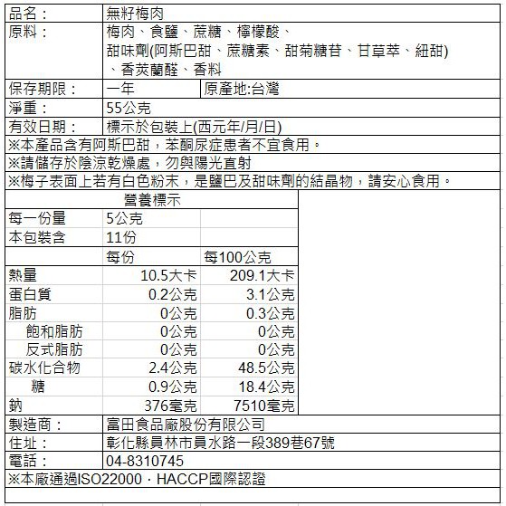 【有顆梅】『無籽梅肉』經典蜜餞(55公克/包) / 夾鏈袋 / 超商同款 / 超商熱銷款無籽梅肉(55公克/包)|限時特賣選項Dried SnacksPLUM’S有顆梅 專業製梅 SINCE1949