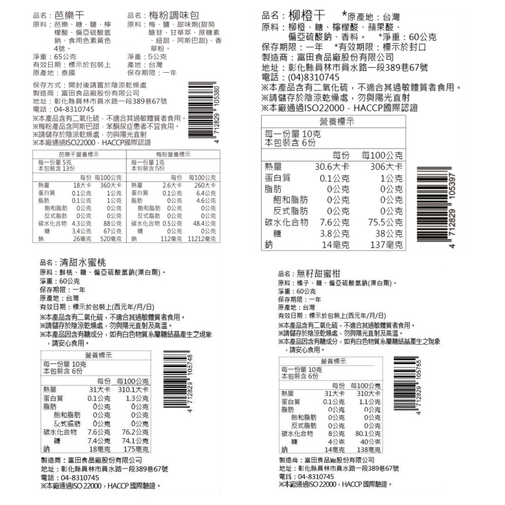 【富田】富田果實果乾(愛文芒果乾/芭樂乾/柳橙乾/檸檬乾/關廟鳳梨乾/清甜水蜜桃/無籽甜蜜柑)7款任選組合包