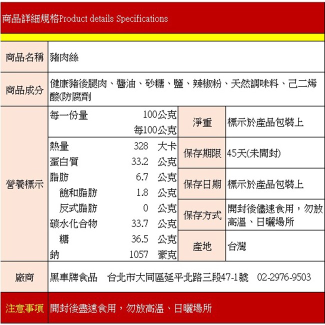 黑車肉乾 – 豬肉絲半台斤 (300公克) / 包|一台斤 (600公克) / 包Dried SnacksQQ精品百貨