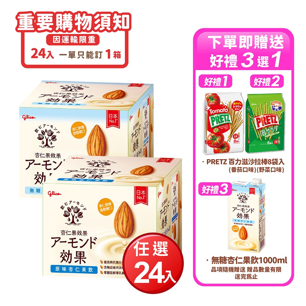 【Glico 格力高】杏仁果飲196mlX24入(原味/無糖) 下單即送贈品3選1中元節 普渡拜拜 中元普渡 拜拜零食原味24入(效期:2026/01/27)|無糖24入(效期:2026/02/01)Non-dairy MilkPocky Bisco|glico格力高官方旗艦店