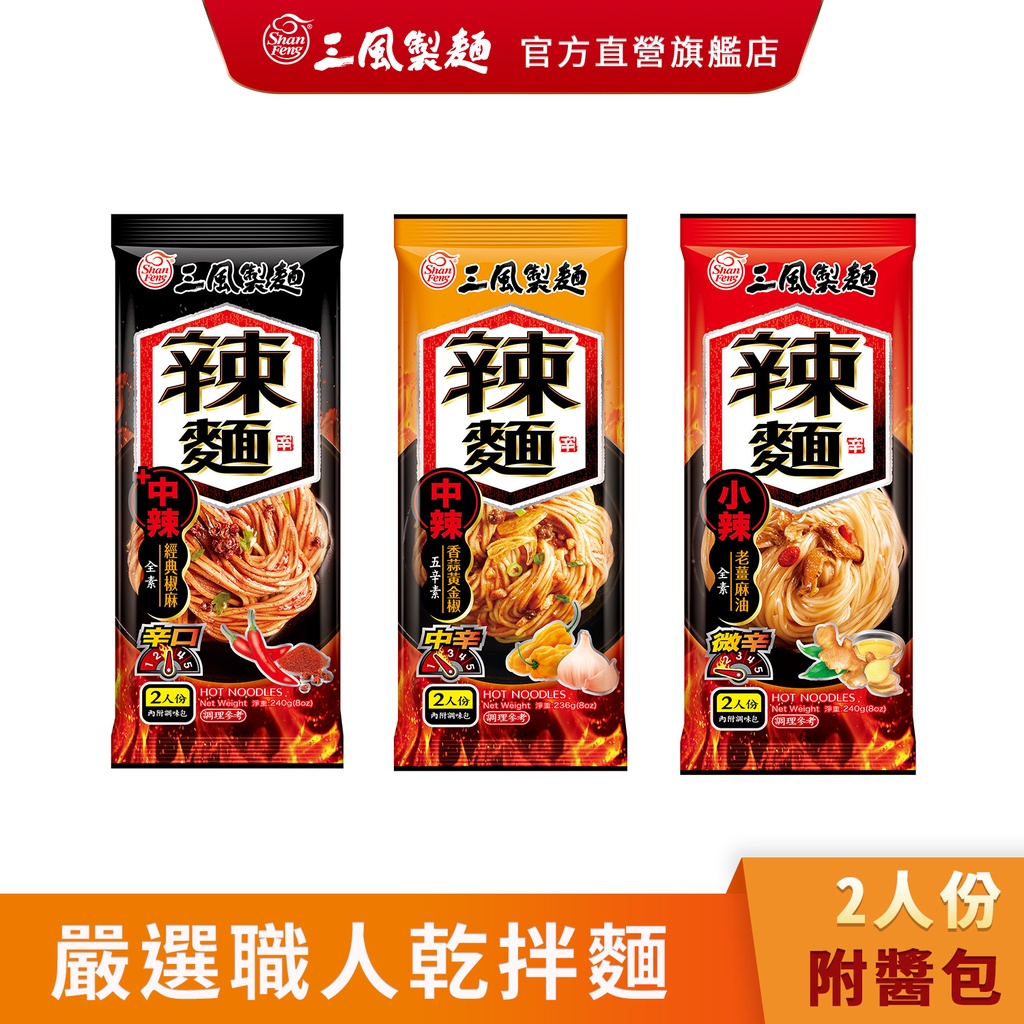 【三風製麵】辣麵 經典椒麻細麵 香蒜黃金椒細麵 老薑麻油麵線經典椒麻-細麵(純素)1包2人份|香蒜黃金椒-細麵(五辛素)1包2人份|老薑麻油-麵線(純素)1包2人份NoodlesShanfeng 三風製麵官方旗艦館