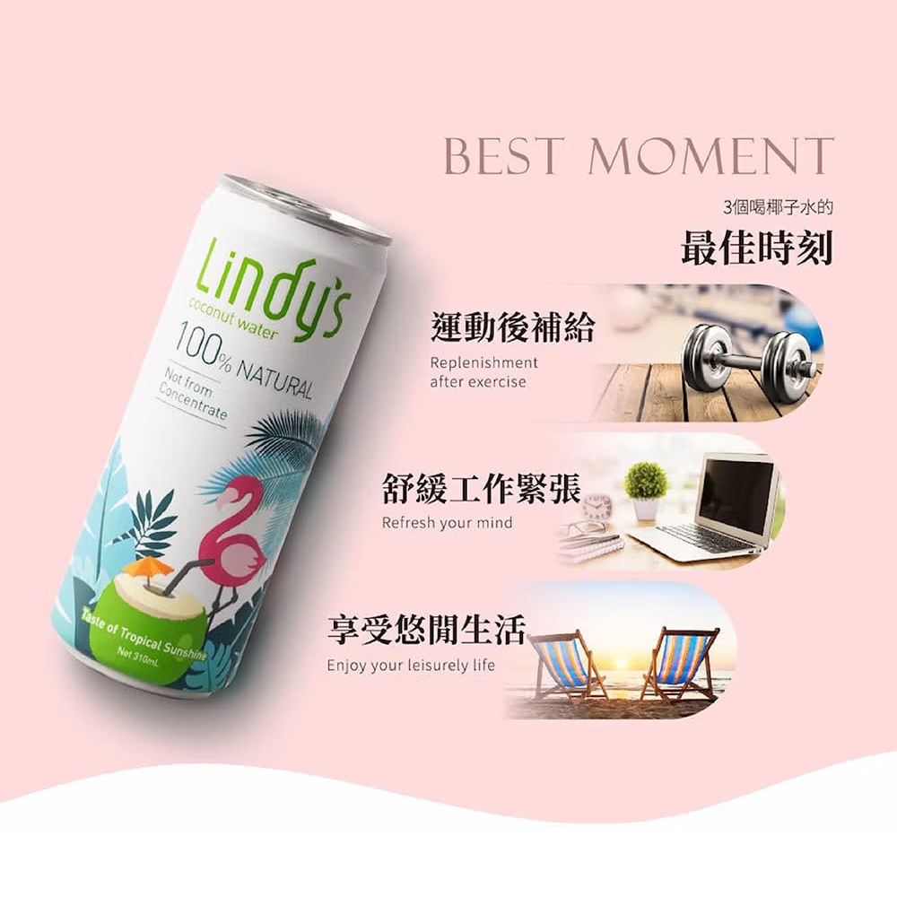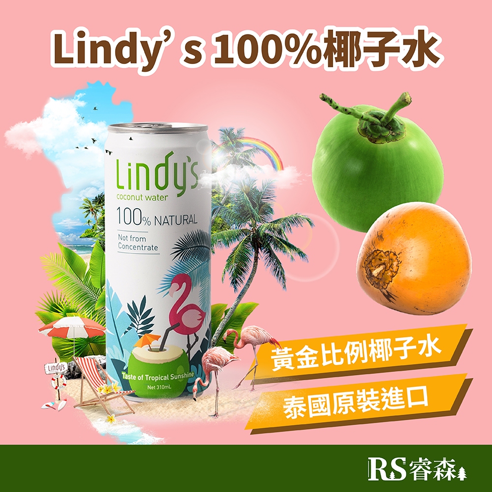 Lindy’s 100%椰子水 310ml 泰國椰子水 天然椰子汁 無加糖椰子水 無添加 香水椰子汁 派對火鍋團購美食100%椰子水 2026/8/5Juice & Juice VinegarRS睿森嚴選|秋樂富油品