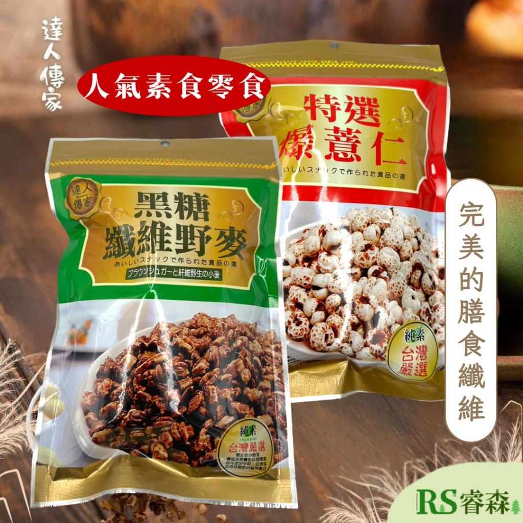 達人傳家 特選爆薏仁 黑糖纖維野 (全素) 膳食纖維 紅薏仁 古早味全素 爆薏仁 (袋裝) 26.2.20|全素 黑糖纖維野 (全素) 26.2.8Dried GoodsRS睿森嚴選|秋樂富油品