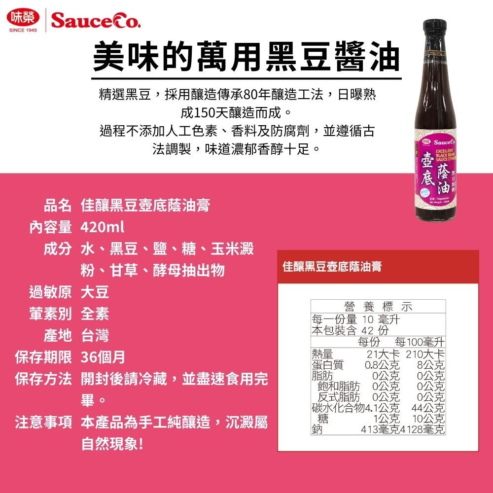 【味榮】佳釀黑豆壺底蔭油膏420ml【味榮】佳釀黑豆壺底蔭油膏420mlSeasonings & CondimentsSauceCo.味榮食品 官方旗艦館