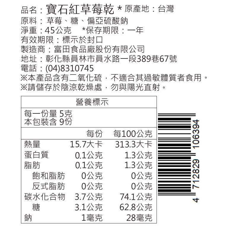 【富田果實】寶石紅草莓乾(45公克/包)日式果乾/草莓乾/草莓/水果乾/果乾寶石紅草莓乾(45g/包)Dried SnacksPLUM’S有顆梅 專業製梅 SINCE1949