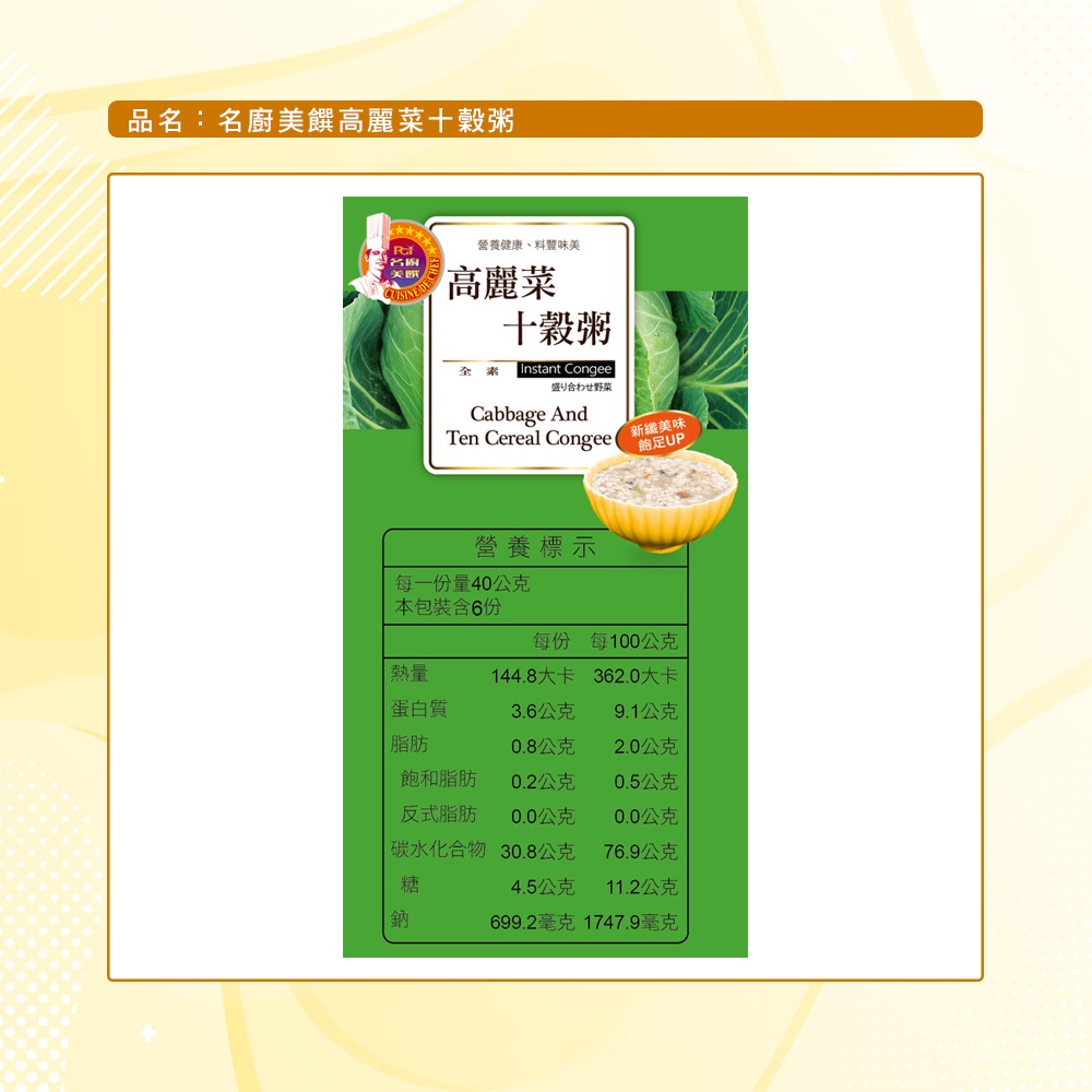 【名廚美饌】高麗菜十榖粥(40gx6入)【名廚美饌】高麗菜十榖粥(40gx6入)Instant Rice & PorridgePGI名廚美饌官方網路商店