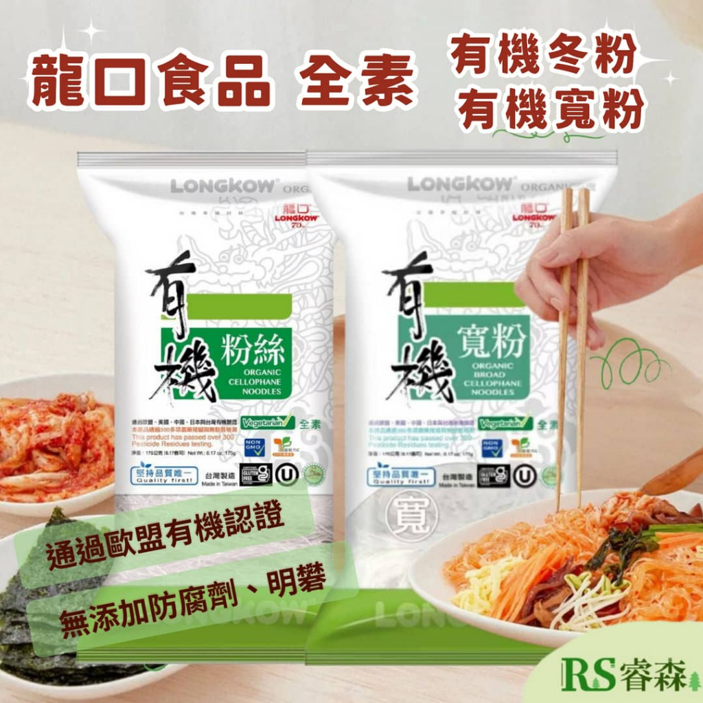 龍口食品 有機冬粉 有機寬粉 175g 有機粉絲 低熱量冬粉 綠豆冬粉 無麩質冬粉 沖泡粉絲 即食粉絲 歐盟有機認證有機粉絲 2027.08.05|有機寬粉 2027.09.04NoodlesRS睿森嚴選|秋樂富油品