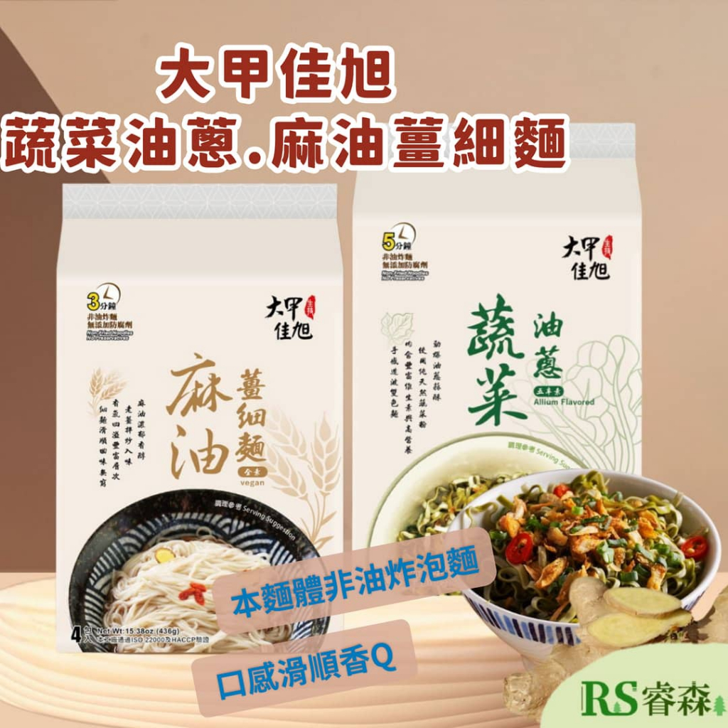 大甲佳旭 蔬菜油蔥麵(五辛素) 麻油薑細麵(全素) 麻油細麵 大甲乾麵 麻油麵線 油蔥伴麵 乾拌麵全素 麻油薑細麵 2026/04/27|五辛素蔬菜油蔥 雙色麵 26/6/29NoodlesRS睿森嚴選|秋樂富油品