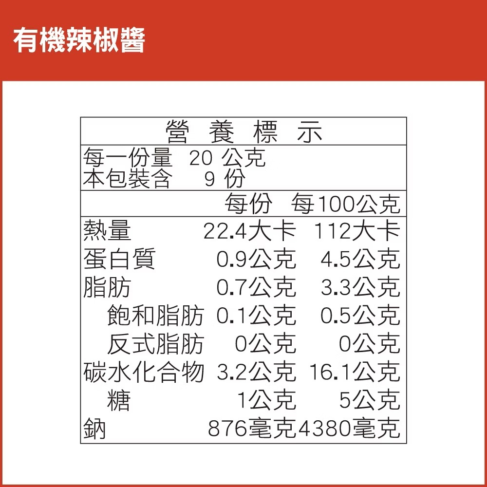 味榮 有機辣椒醬180g【買一送一】有機辣椒 全素辣椒醬 火鍋沾醬 水餃沾醬 乾拌麵醬 辣瓣醬 香辣醬味榮 有機辣椒醬180g【買一送一】有機辣椒 全素辣椒醬 火鍋沾醬 水餃沾醬 乾拌麵醬 辣瓣醬 香辣醬Seasonings & CondimentsRS睿森嚴選|秋樂富油品