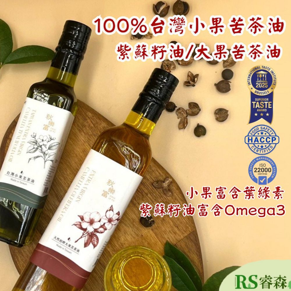 秋樂富 油品【500ml】3款 初榨大果苦茶油 100%台灣小果苦茶油 紫蘇籽油 Omega-3 台灣苦茶油 冷壓初榨限量100%台灣小果 26/12/12|天然初榨大果苦茶油 2027/7/1|紫蘇籽油 2027/7/1OilRS睿森嚴選|秋樂富油品