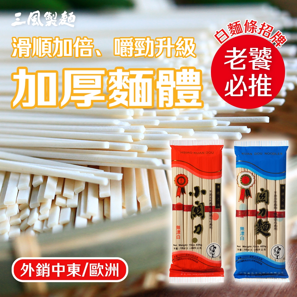 【三風製麵】關刀麵 小關刀麵 425g 全素 直麵 方刀加厚麵體關刀麵|小關刀麵NoodlesShanfeng 三風製麵官方旗艦館