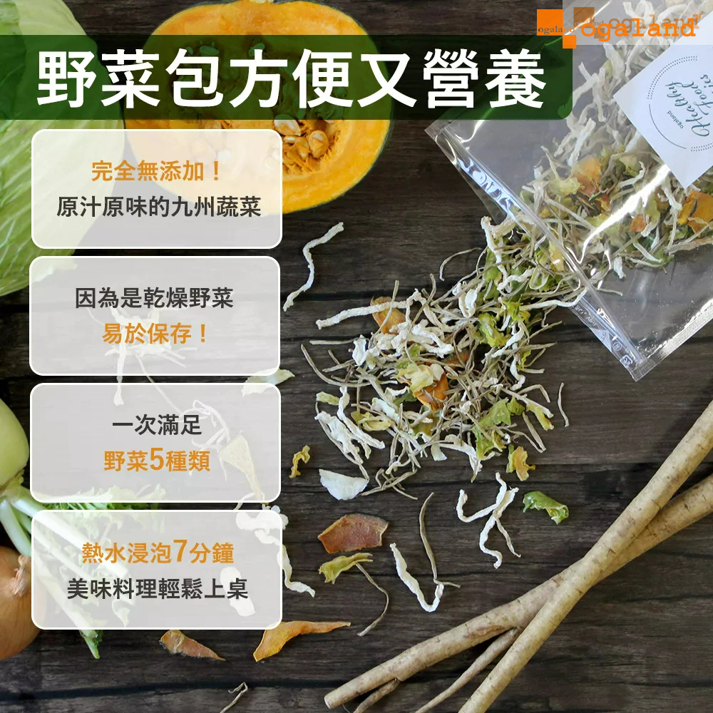 【ogaland】滿滿營養野菜包 60g 日本九州蔬菜 乾燥蔬菜 高麗菜 南瓜 牛蒡 洋蔥 白蘿蔔 綜合蔬菜效期 2025/09/24|效期 2026/01/07Dried Goodsogaland日本生活選品