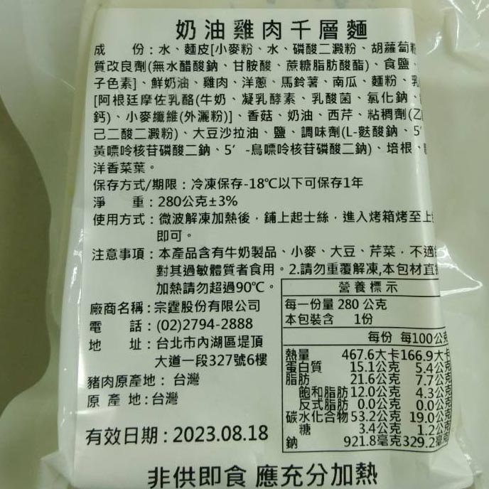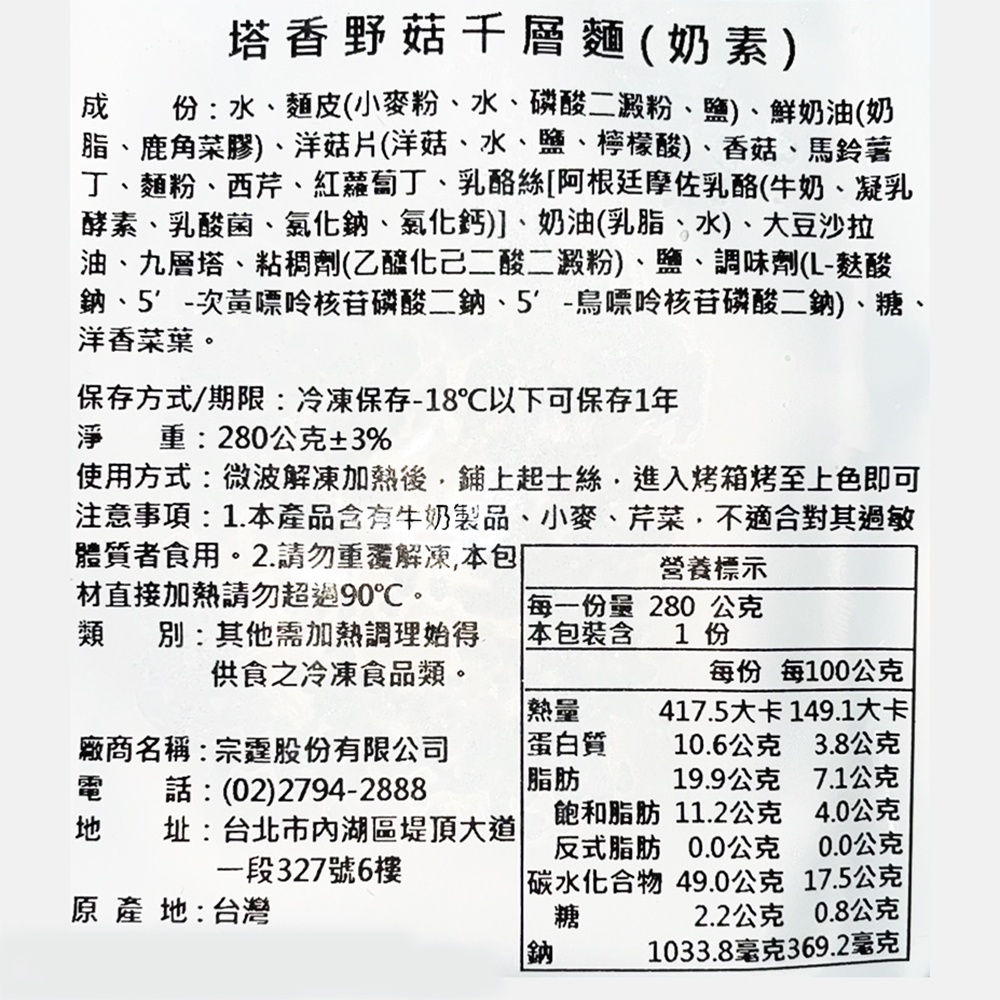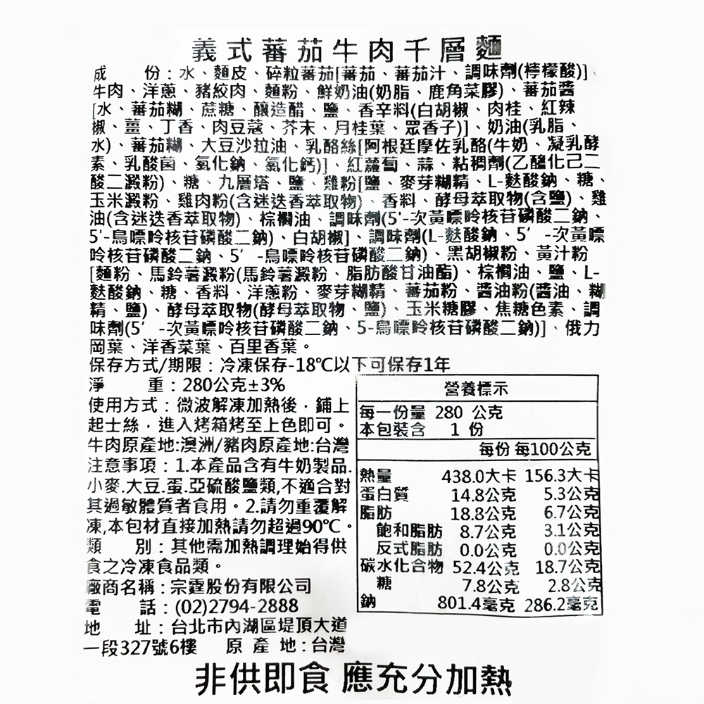 【宗霆】千層麵系列(奶油雞肉/巧達海鮮/番茄牛肉/塔香野菇)(280g)塔香野菇|奶油雞肉|巧達海鮮|番茄牛肉PastaPGI名廚美饌官方網路商店