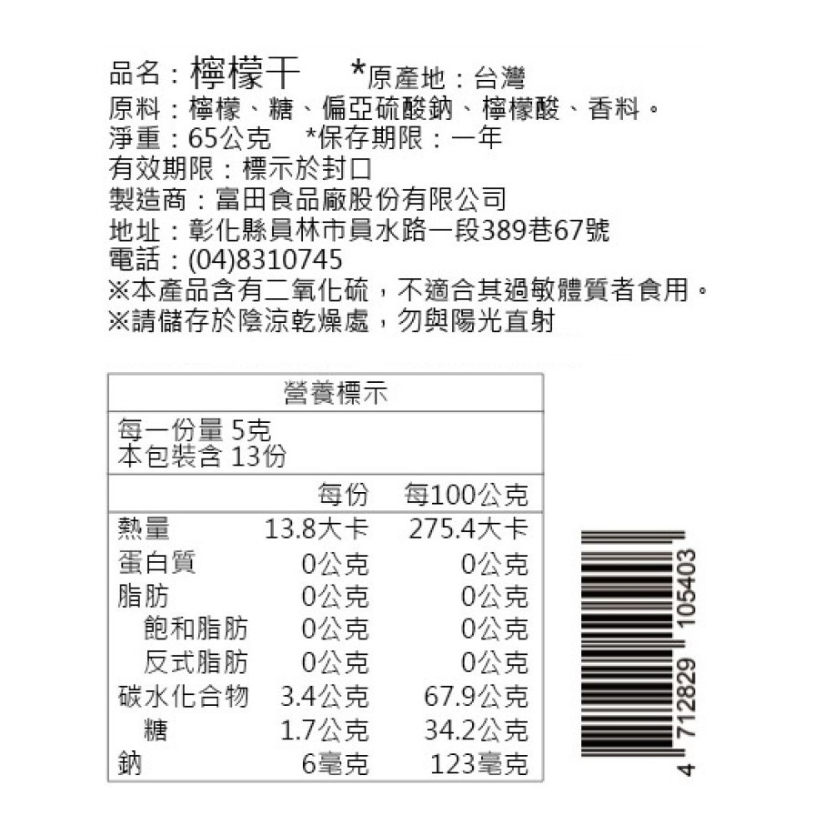 【富田果實】檸檬干(65g/包)檸檬乾/日式果乾 (夾鏈袋) / 隨身包 / 好攜帶 /果乾/水果乾/直送超熱銷檸檬干(65g/包)|限時特賣選項Dried SnacksPLUM’S有顆梅 專業製梅 SINCE1949