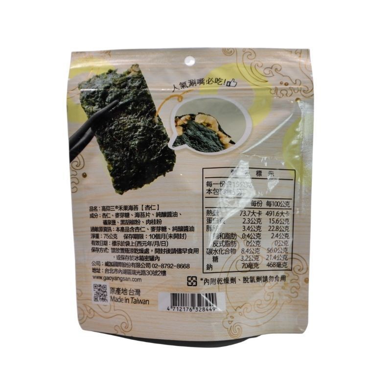 【高仰三】禾果海苔 超級美味的海苔脆片 杏仁海苔【高仰三】禾果海苔 超級美味的海苔脆片 杏仁海苔SeaweedR I C H R I C H|Veggie Care|ANKOMN