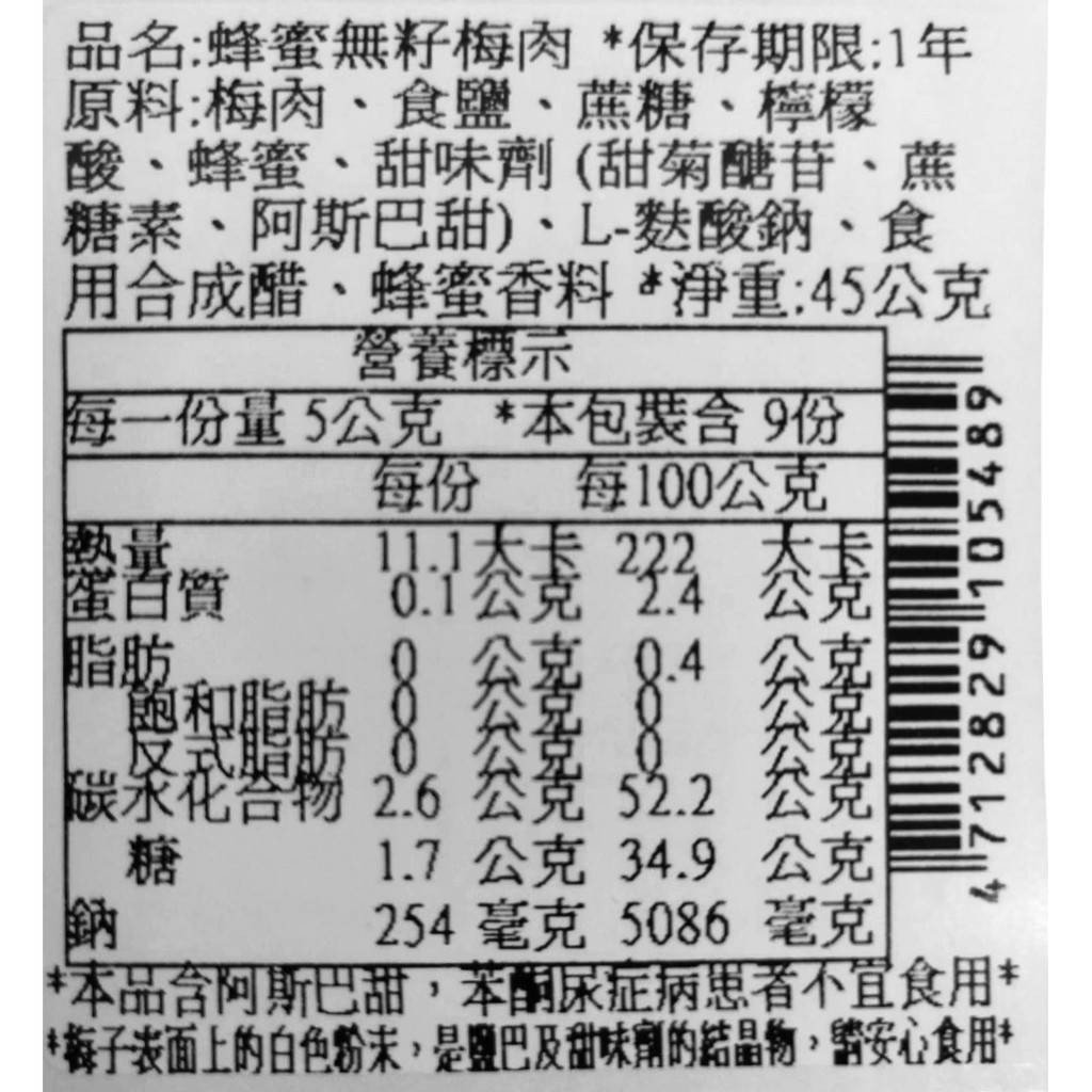 【有顆梅】『蜂蜜無籽梅肉』經典蜜餞(45公克/包) / 夾鏈袋 / 蜂蜜梅肉 / 無籽蜜梅立體袋-蜂蜜無籽梅肉(大)45公克/包|限時特賣選項Dried SnacksPLUM’S有顆梅 專業製梅 SINCE1949