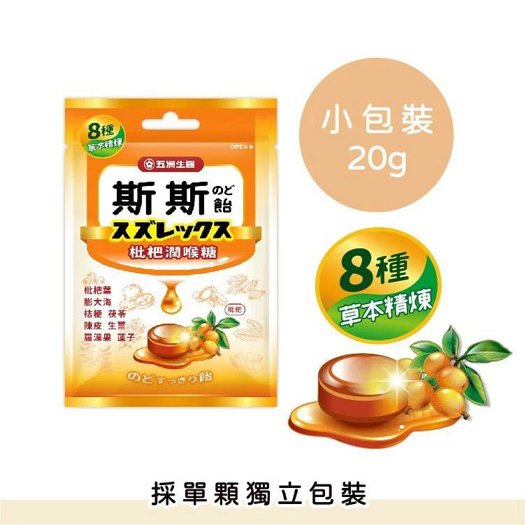 【五洲生醫】斯斯枇杷潤喉糖 ( 單顆小包裝 ) 6包/1盒、18包/3盒、30包/5盒 零食 糖果1盒|3盒|5盒Sweets & CandyPinky官方旗艦館/五洲生醫