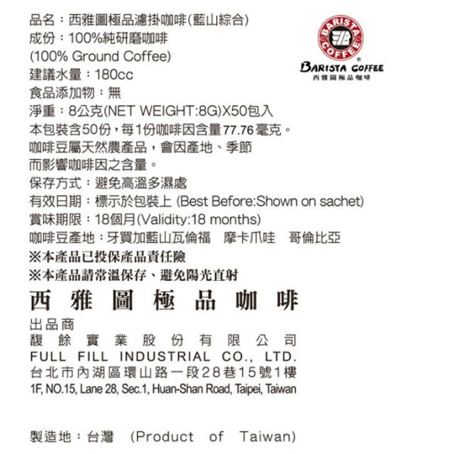 西雅圖藍山綜合濾掛(8g x 50包)50包(散包)|50包(原盒)CoffeeNICETER-嚴選