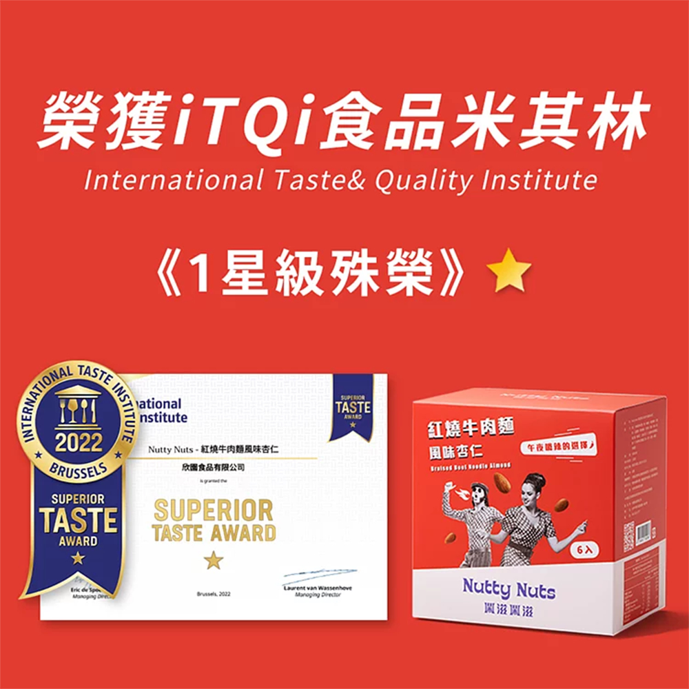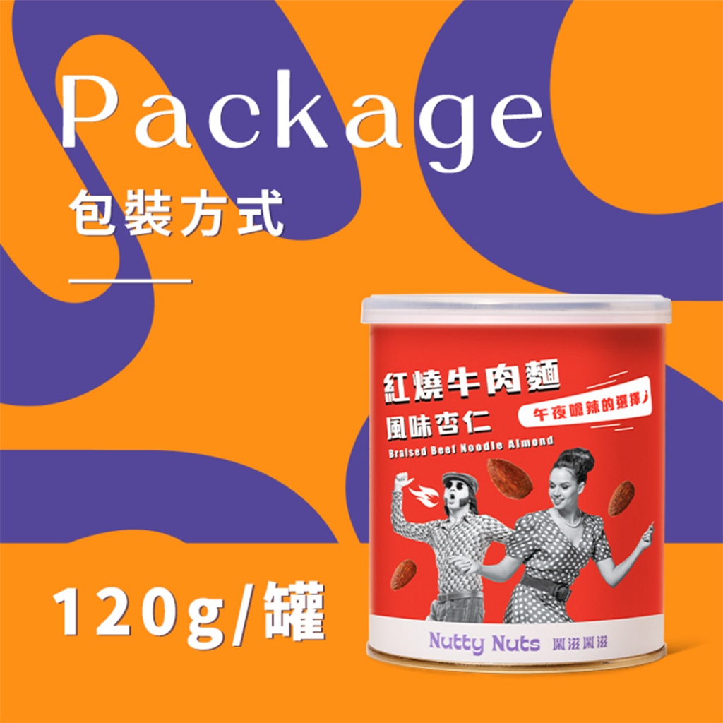 【Nutty Nuts 鬧滋鬧滋】紅燒牛肉麵風味杏仁 | iTQi 米其林一星 | 麻辣 (120g/罐, 6入/盒)120g/罐|30g x 6包/ 盒NutsNutty Nuts 鬧滋鬧滋