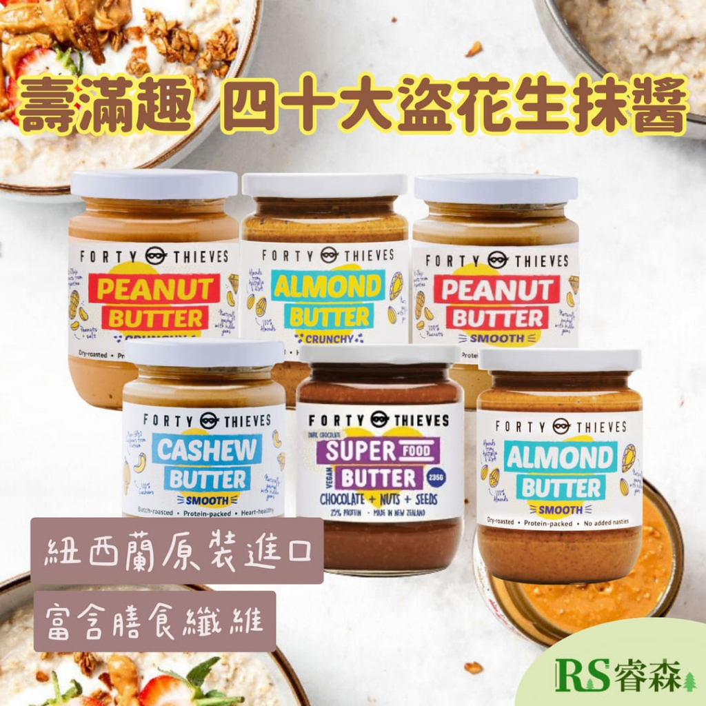 壽滿趣 四十大盜100%抹醬 Forty Thieves 紐西蘭頂級堅果抹醬 杏仁抹醬 腰果抹醬 高油酸 麵包抹醬四十大盜 花生醬顆粒 2026/6/12|四十大盜 杏仁絲滑 26/6/12|四十大盜 腰果絲滑 2026/6/12|四十大盜 花生醬絲滑 2026/6/12|四十大盜 杏仁顆粒 26/6/12|四十大盜 巧克力堅果 26/6/12Jam & SpreadRS睿森嚴選|秋樂富油品